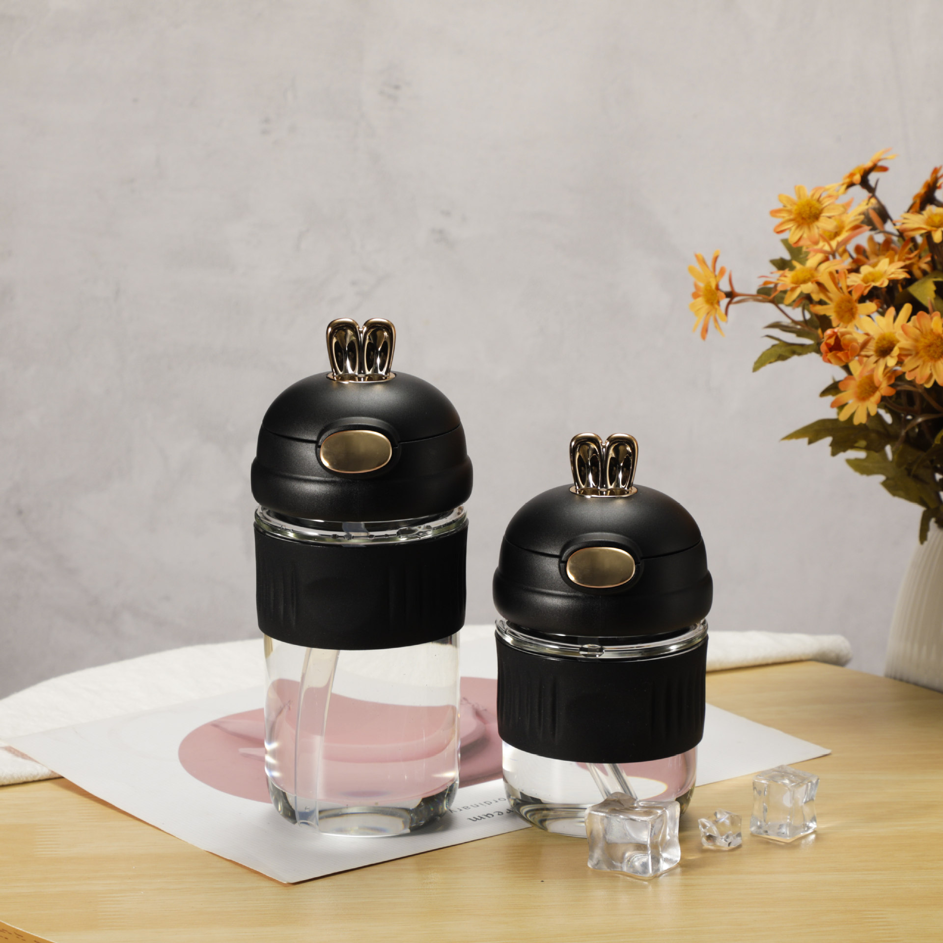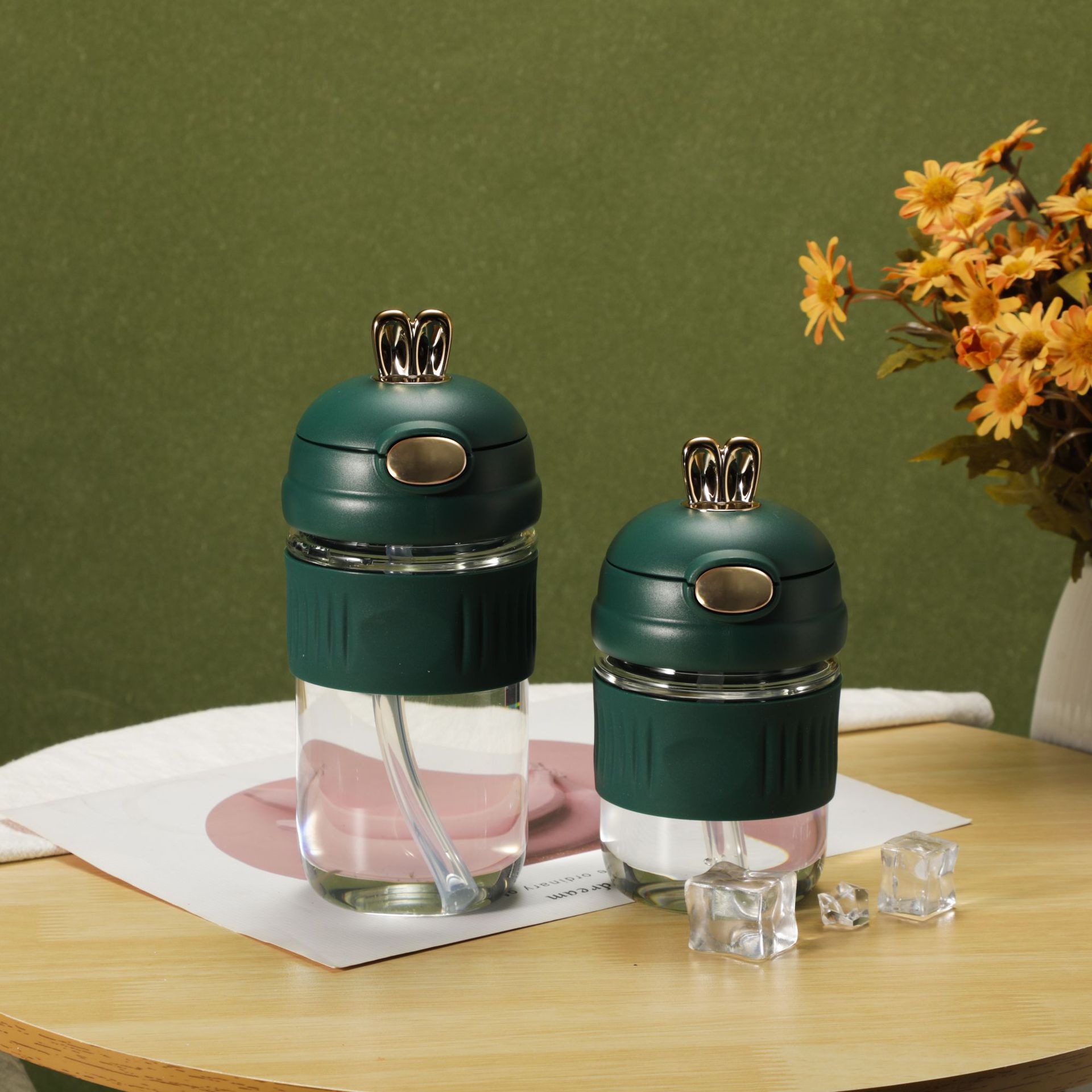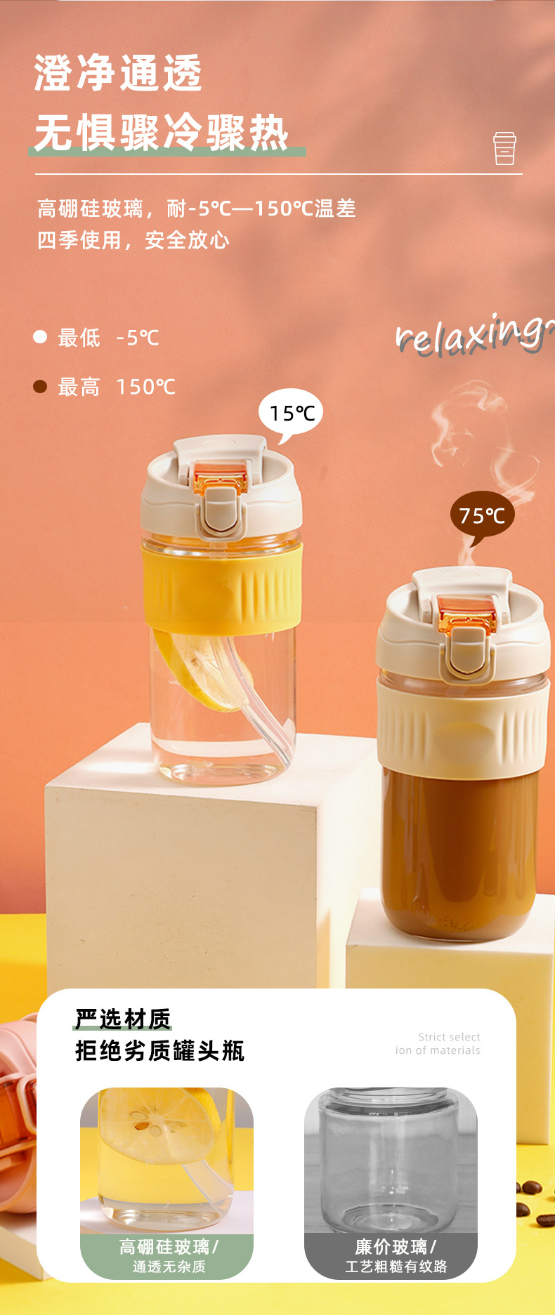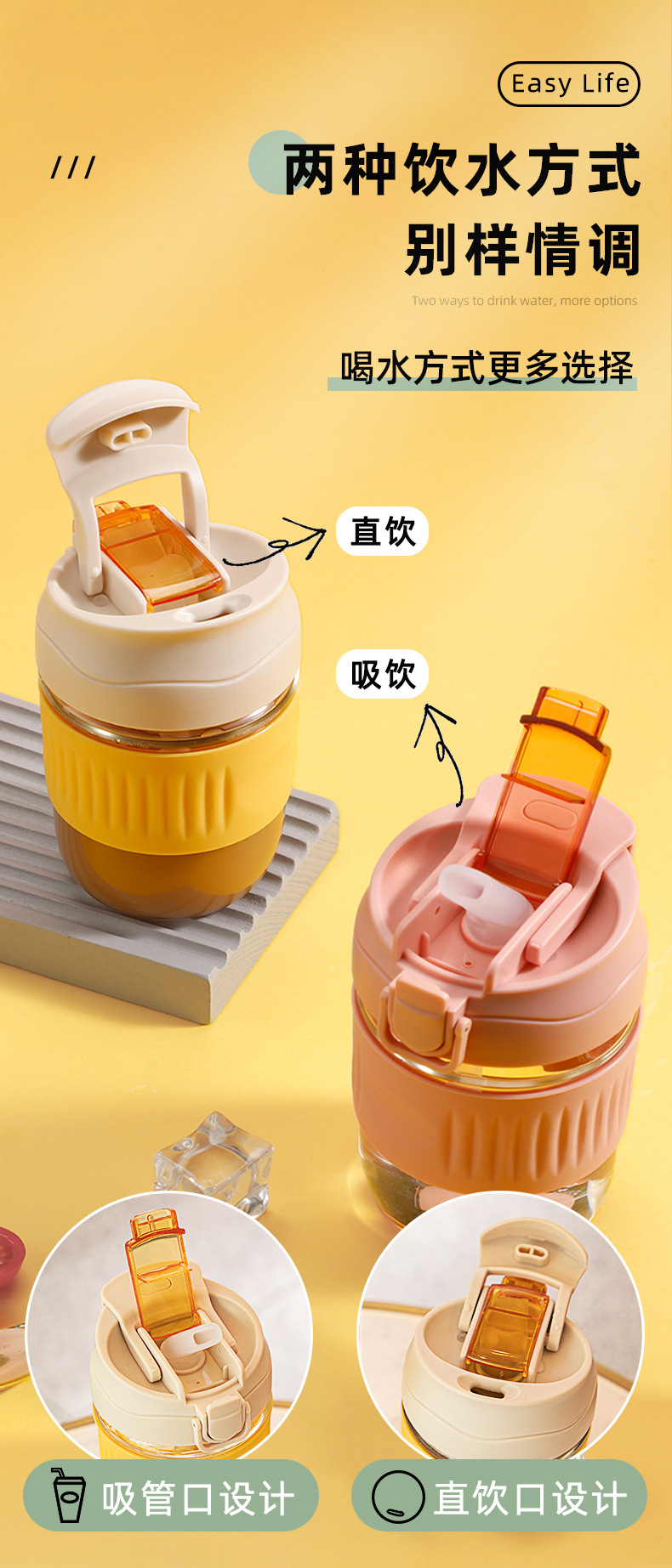 고붕규산 유리 물컵, 더블 드링크 커피 유리컵, 학생용 밀크티 컵, 심플한 직접 마시는 빨대컵, 유리 물컵