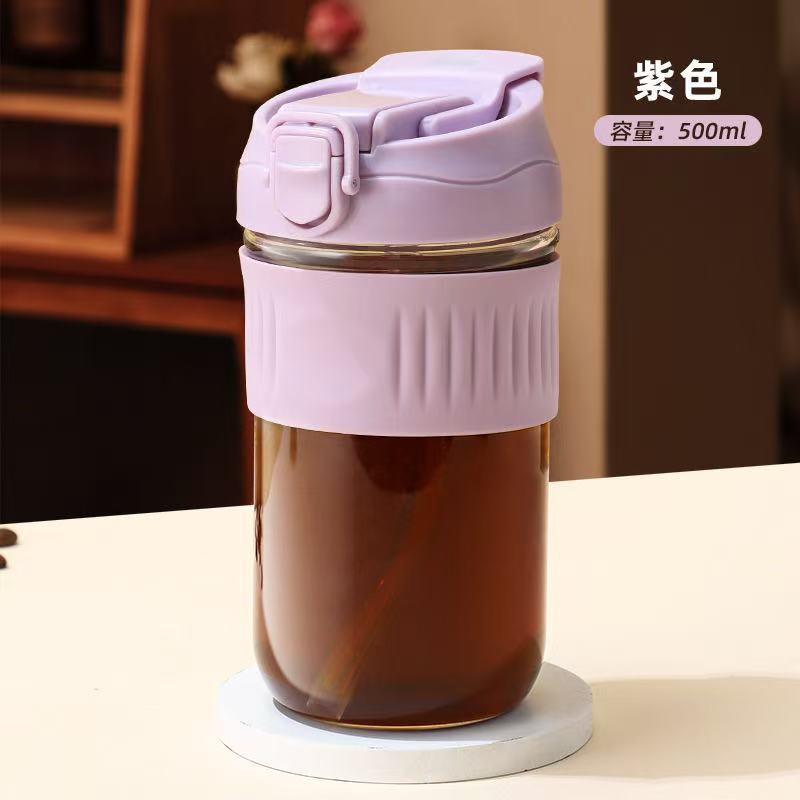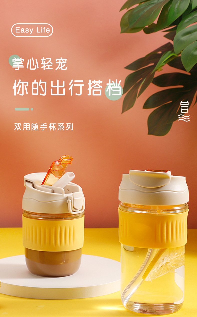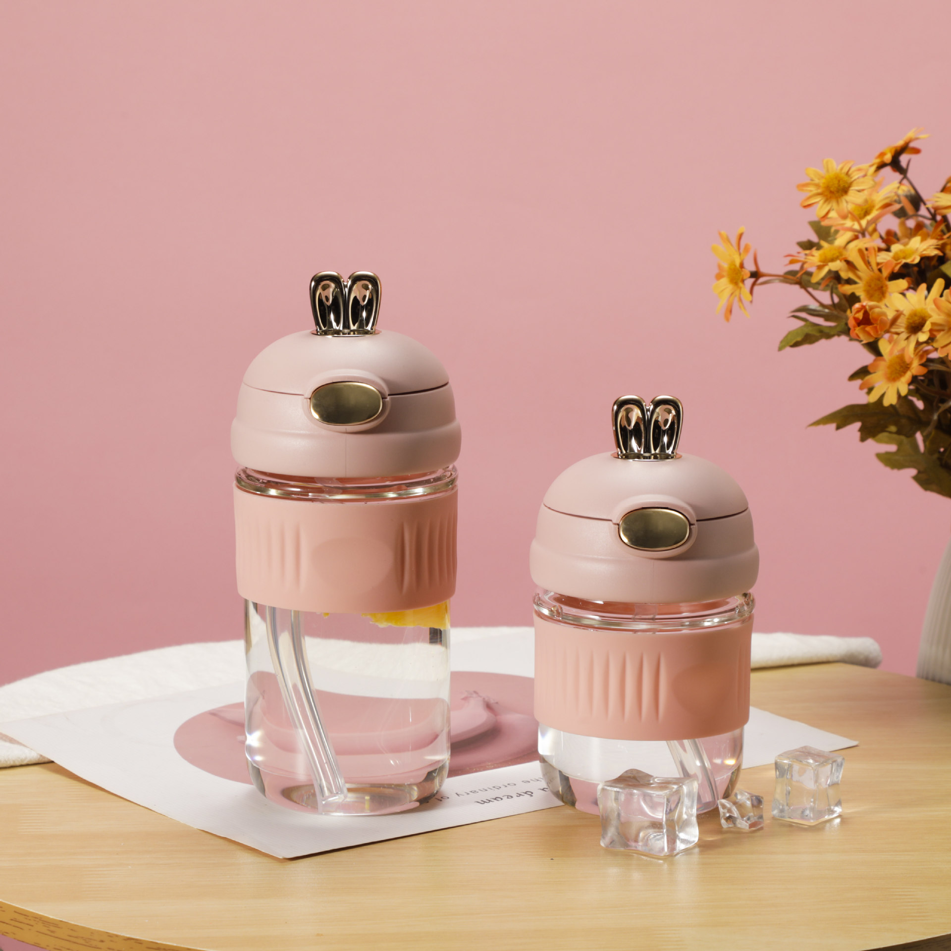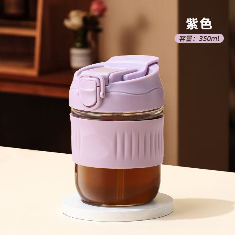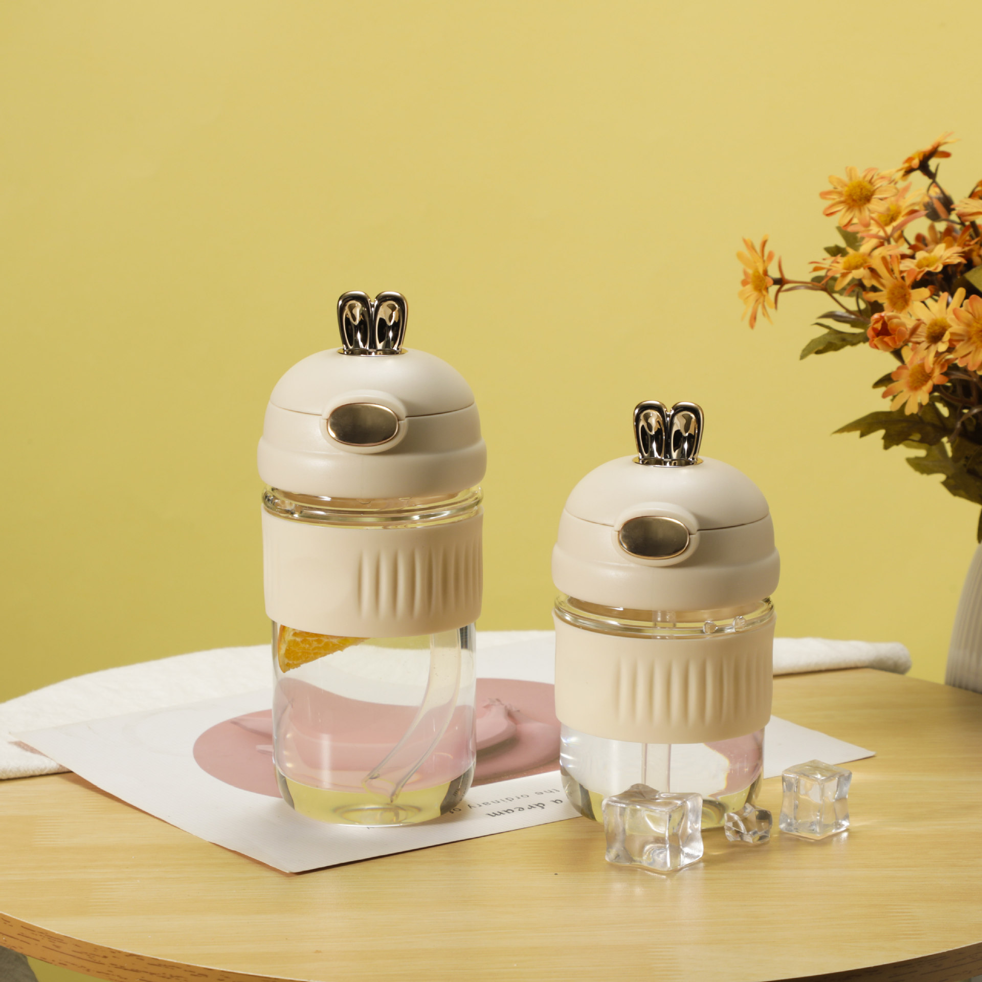 고붕규산 유리 물컵, 더블 드링크 커피 유리컵, 학생용 밀크티 컵, 심플한 직접 마시는 빨대컵, 유리 물컵
