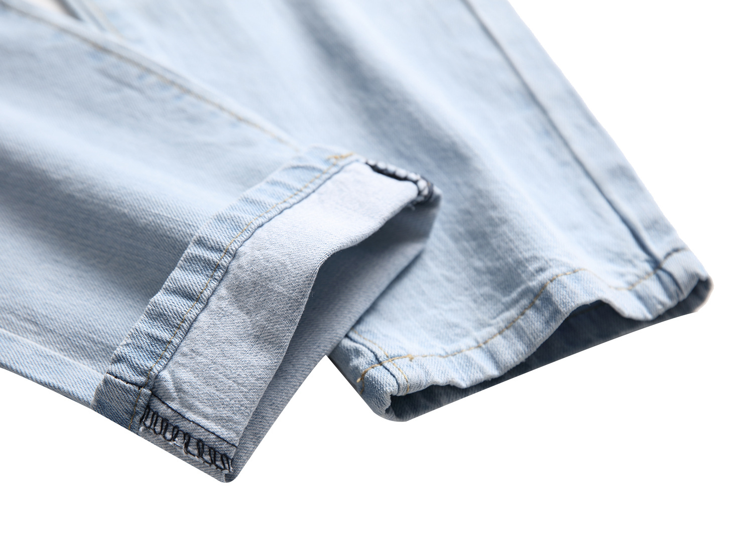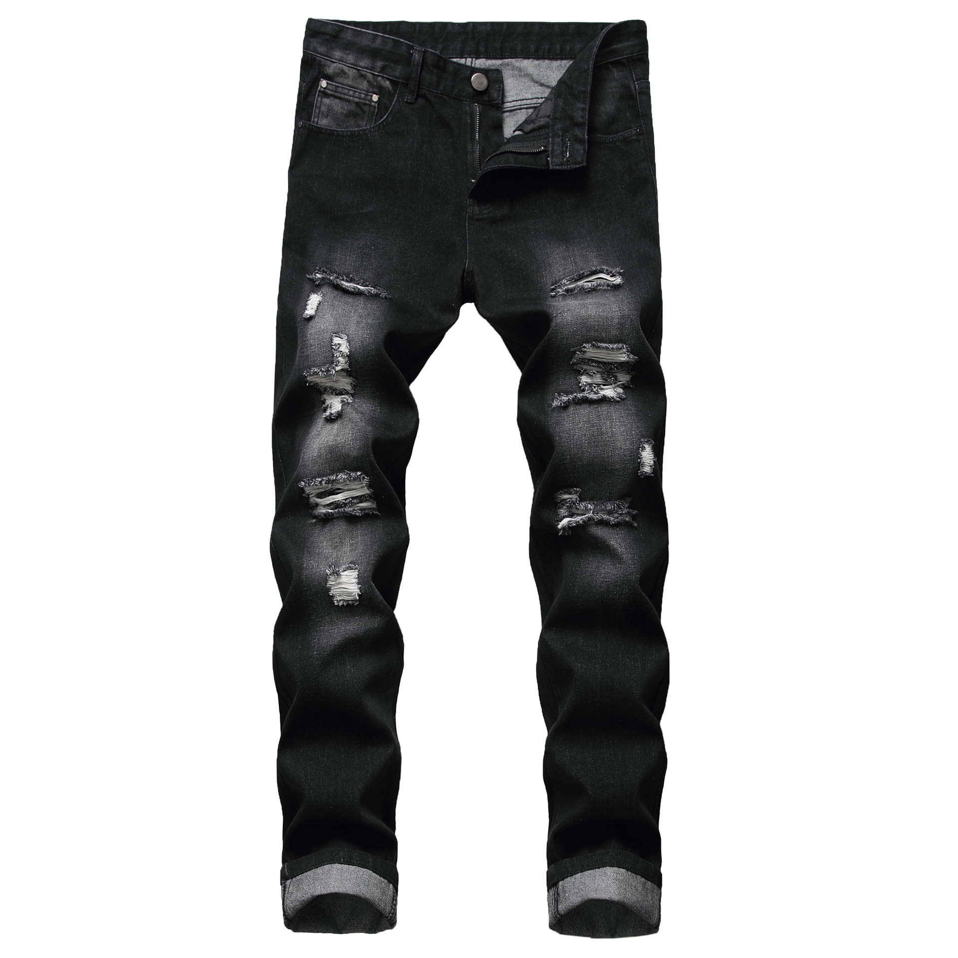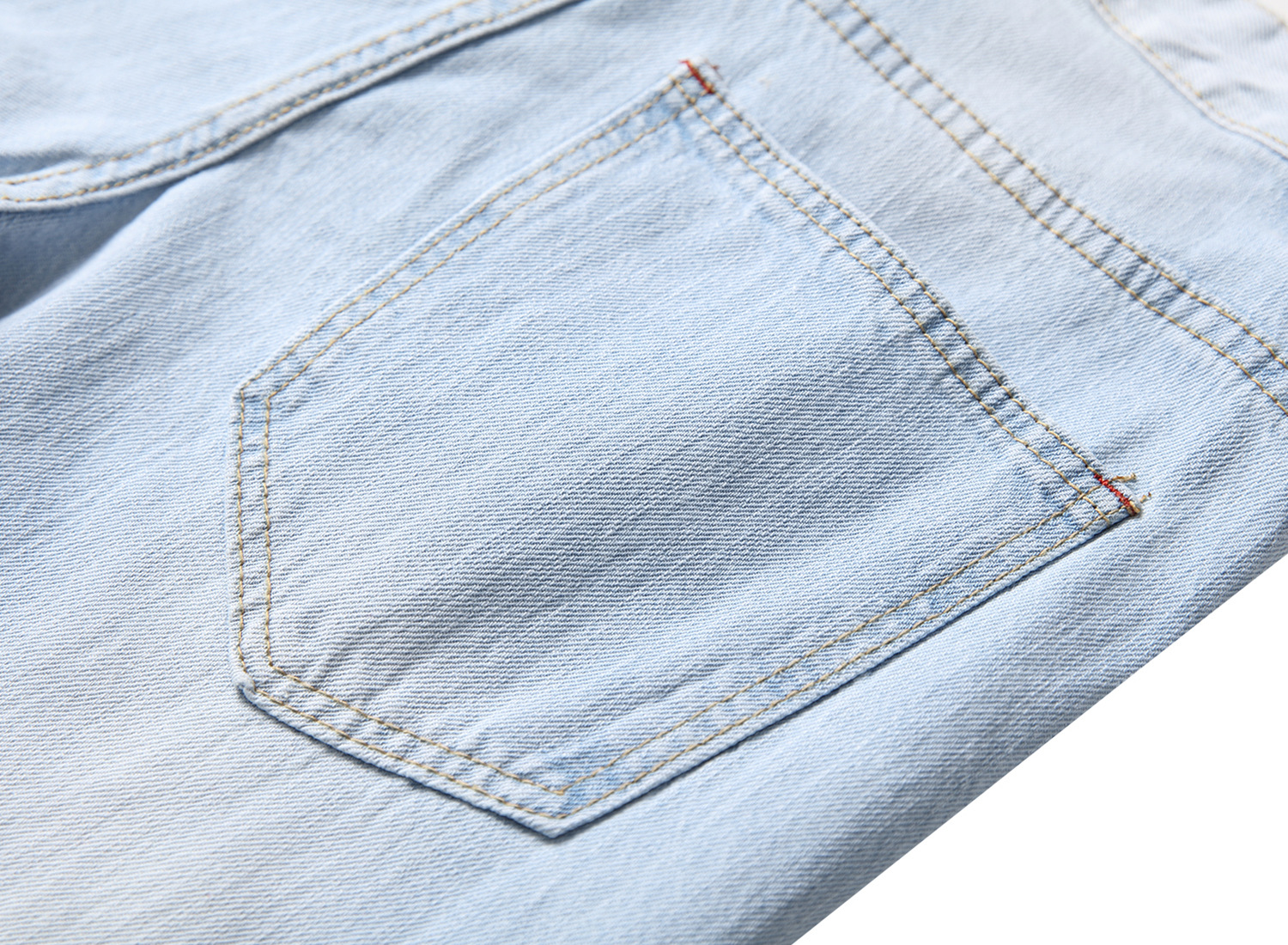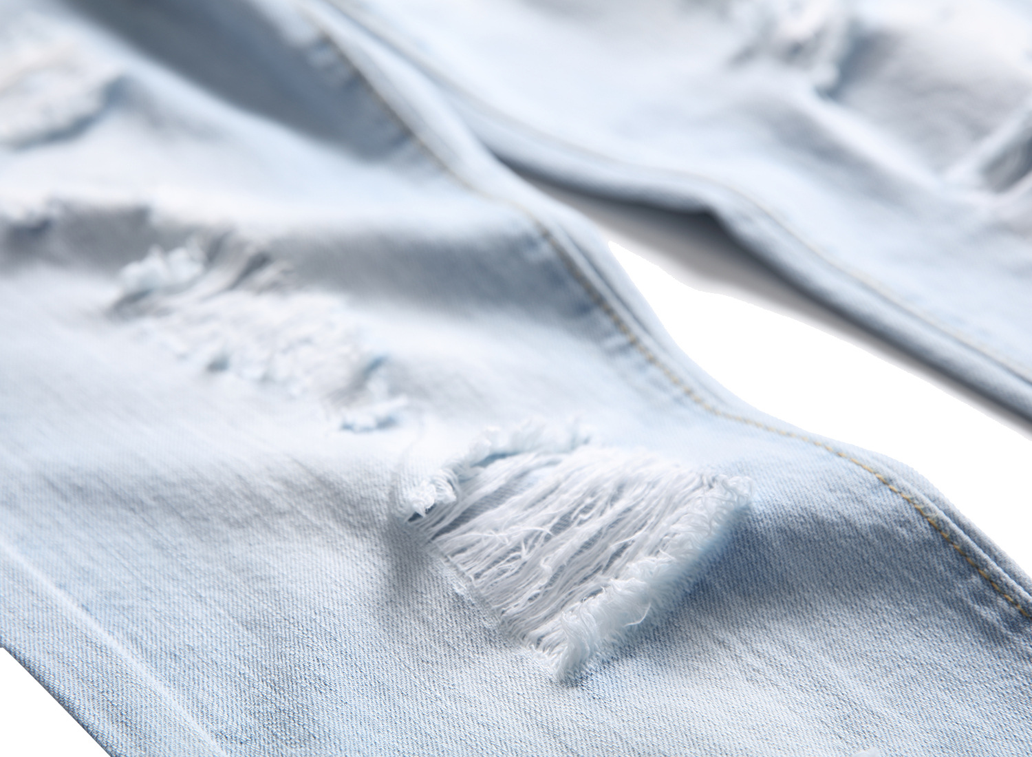 크로스 보더 남성용 찢어진 스트레이트 슬림 핏 비 탄성 청바지 찢어진 남성용 밝은 색 데님 바지스토어 가기