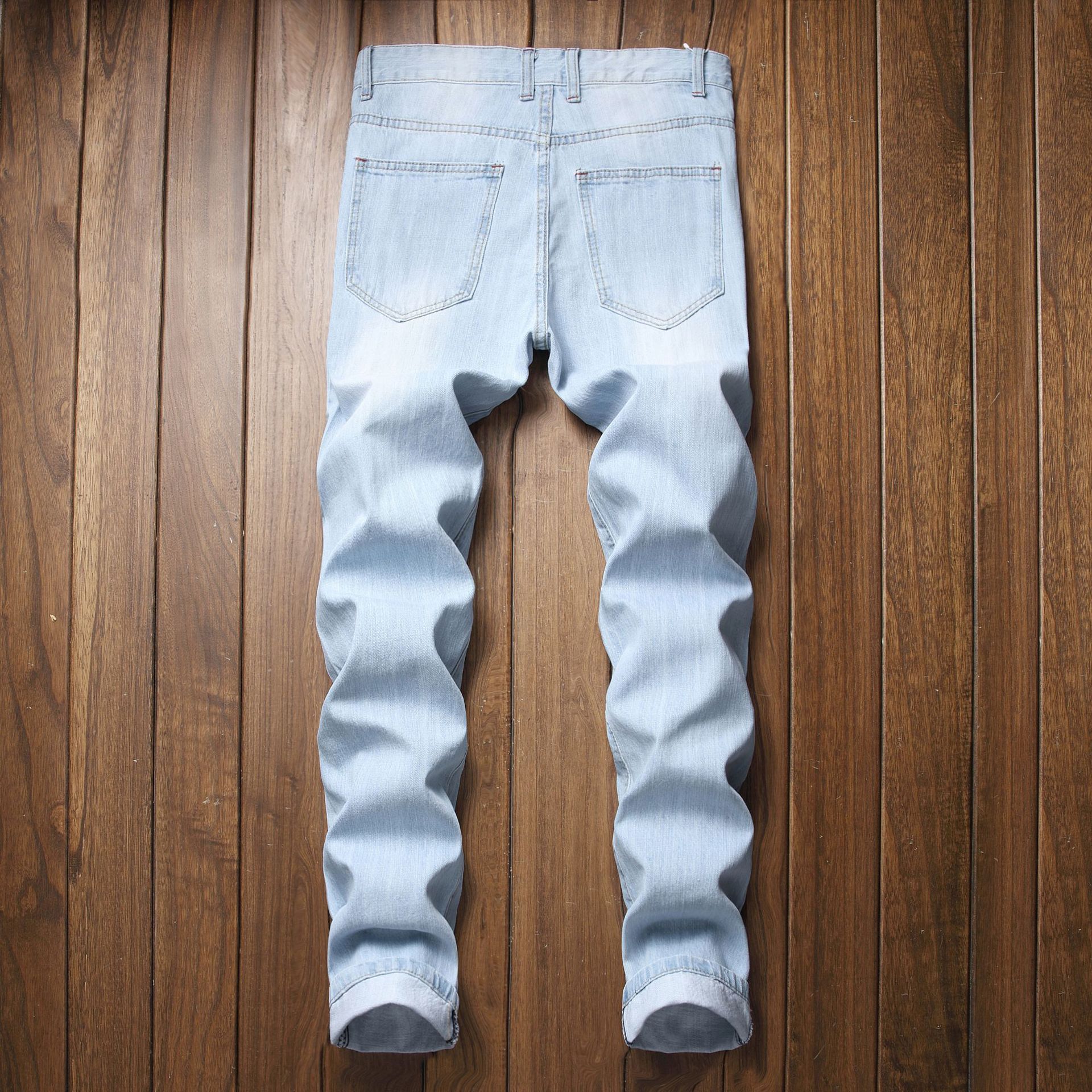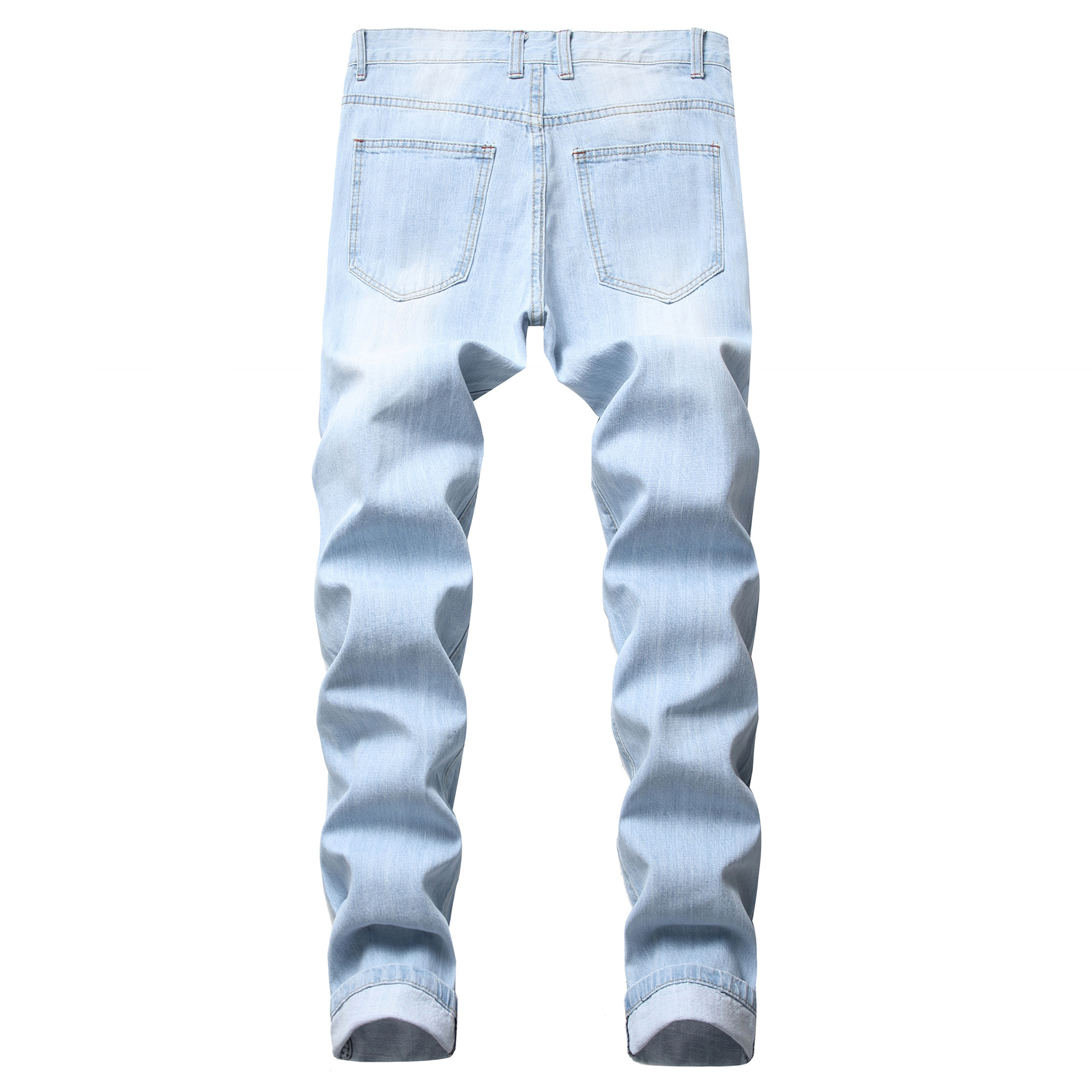크로스 보더 남성용 찢어진 스트레이트 슬림 핏 비 탄성 청바지 찢어진 남성용 밝은 색 데님 바지