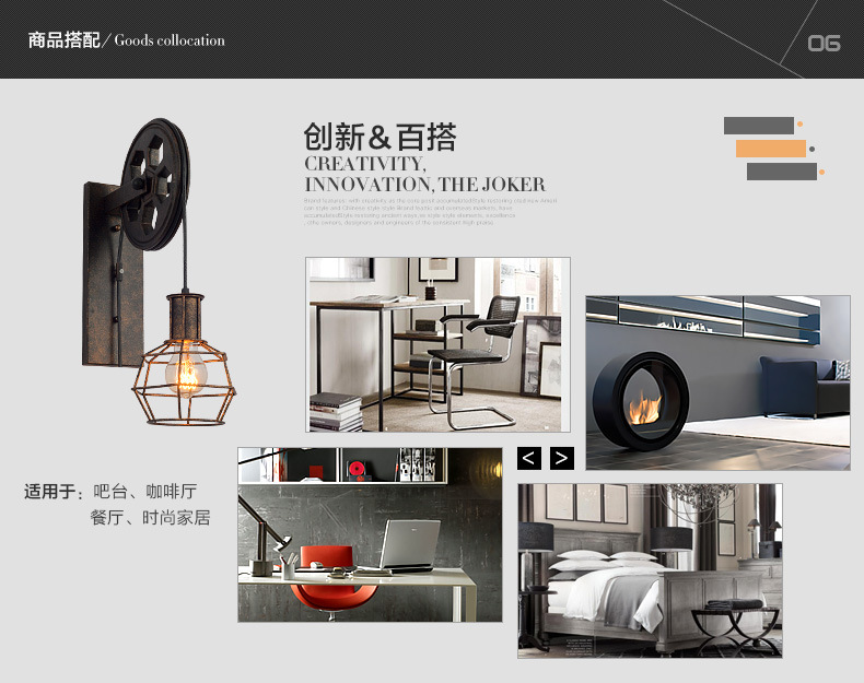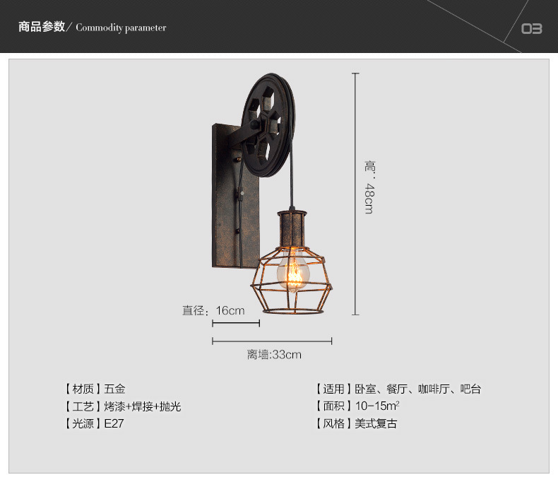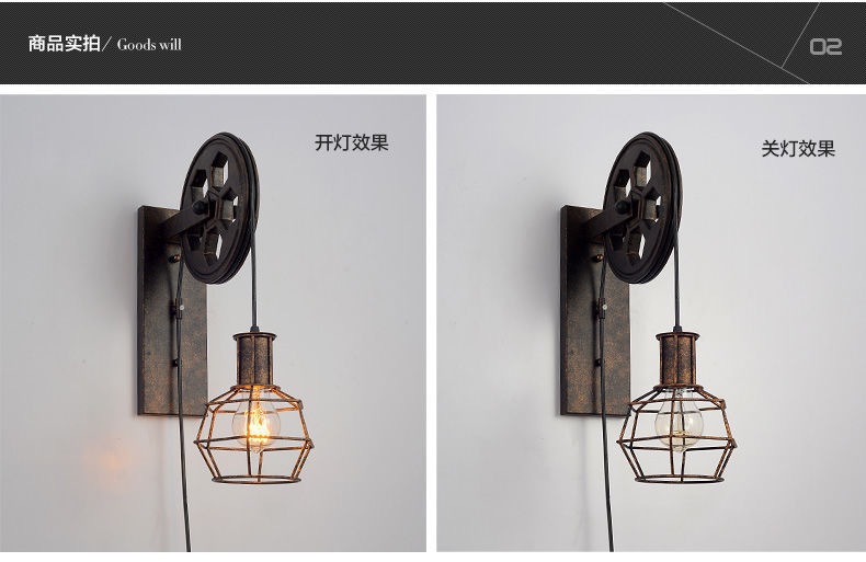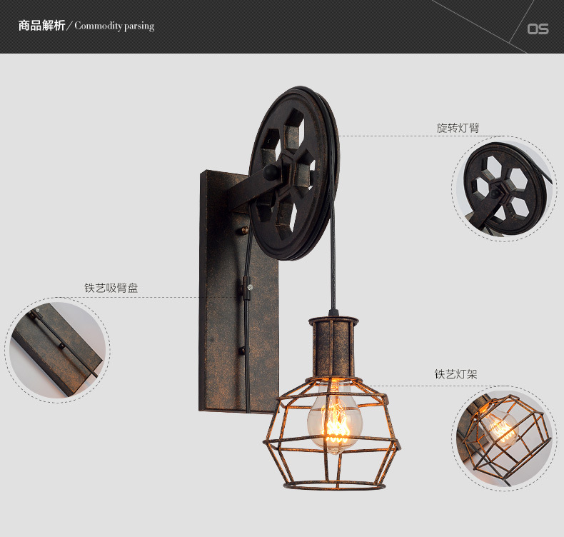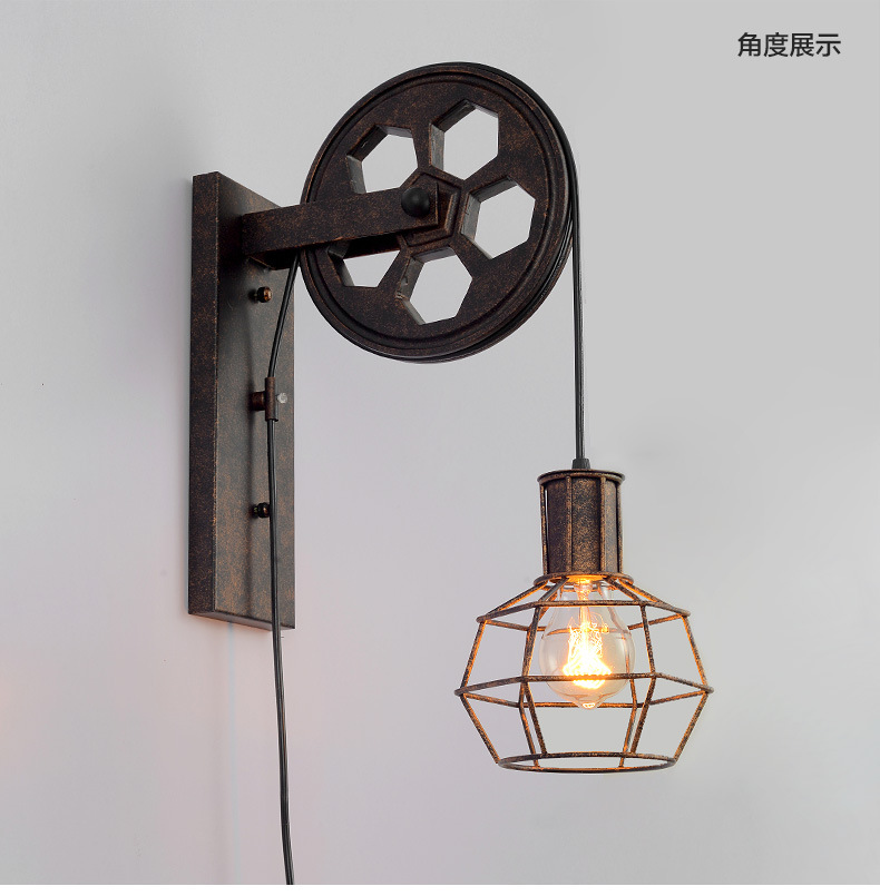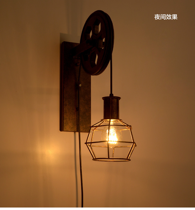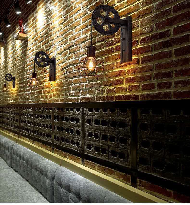 로프트 아메리칸 스타일 복고풍 성격 통로 복도 커피 레스토랑 장식 계단 산업 바람 풀리 벽 리프팅 벽 램프