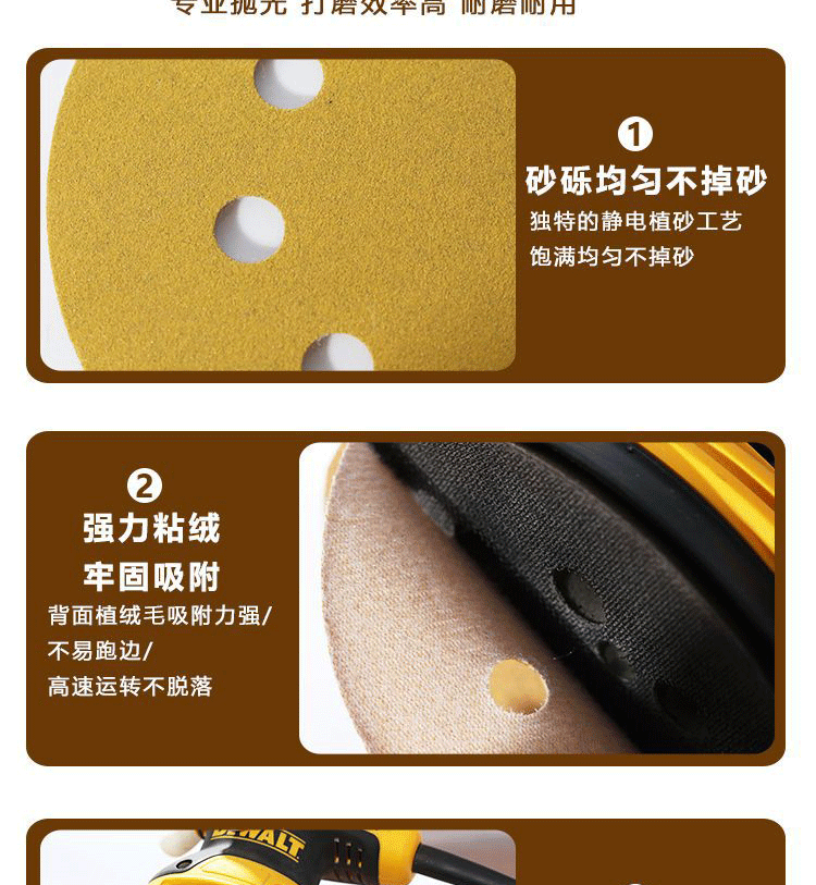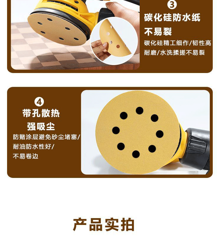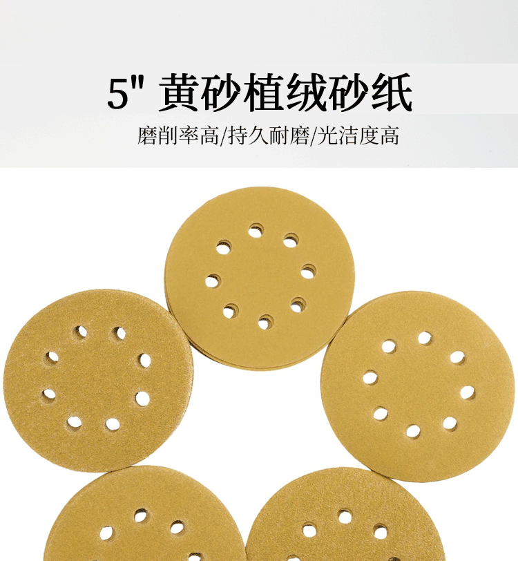 노란색 사포 5인치 8홀 벨크로식 건식 사포 접착식 원형 사포 에어 그라인더 연마 광택 125mm