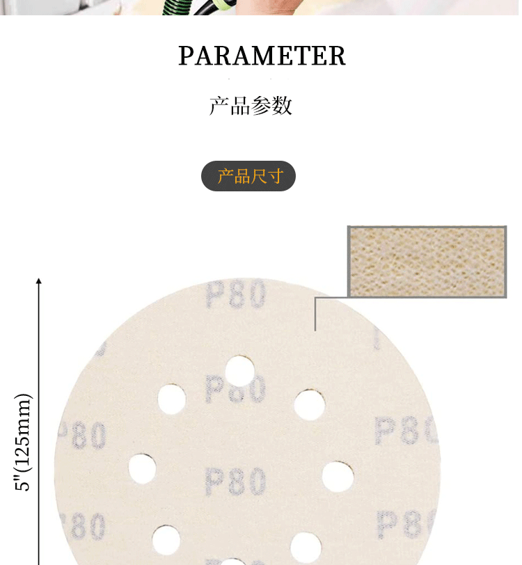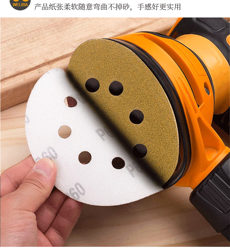 노란색 사포 5인치 8홀 벨크로식 건식 사포 접착식 원형 사포 에어 그라인더 연마 광택 125mm스토어 가기