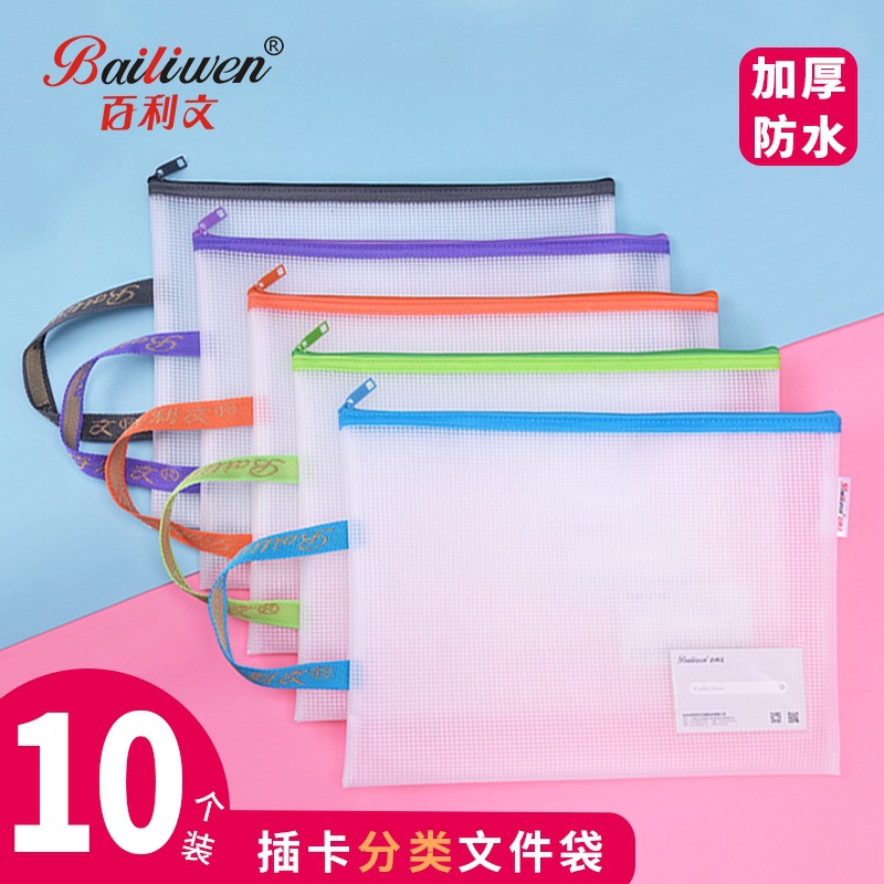Baili A4 파일 가방 그리드 저장 가방 문구 가방 지퍼 데이터 가방 A5 파일 가방 파일 가방 도매스토어 가기