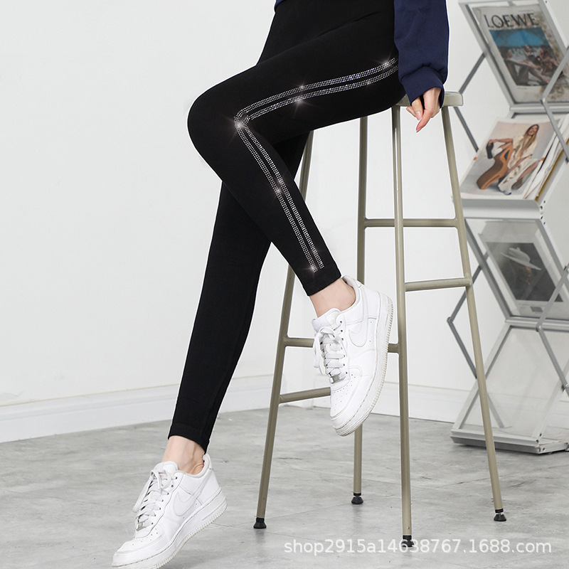 新款大码烫钻莫代尔九分打底裤女外穿高弹显瘦小脚裤undefined