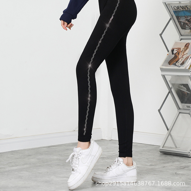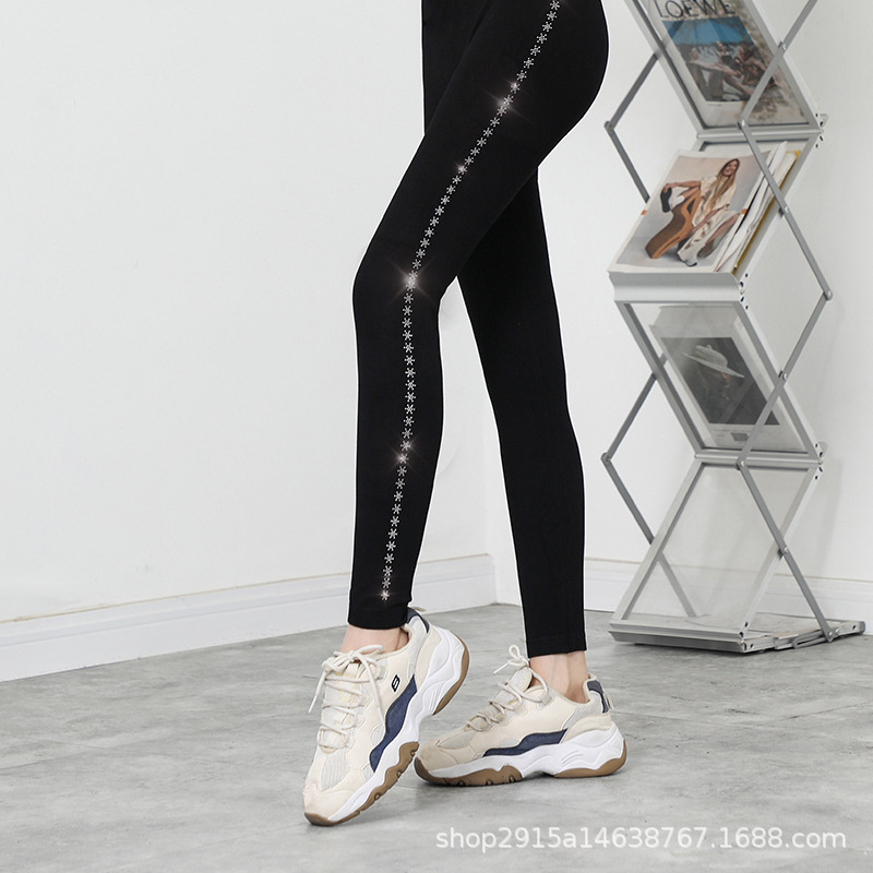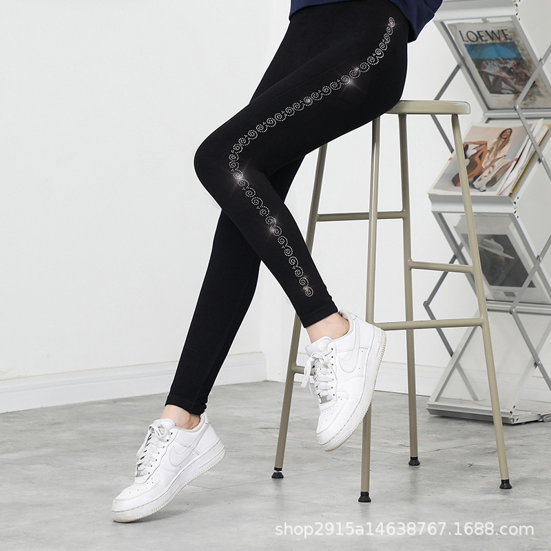 新款大码烫钻莫代尔九分打底裤女外穿高弹显瘦小脚裤打底裤_13