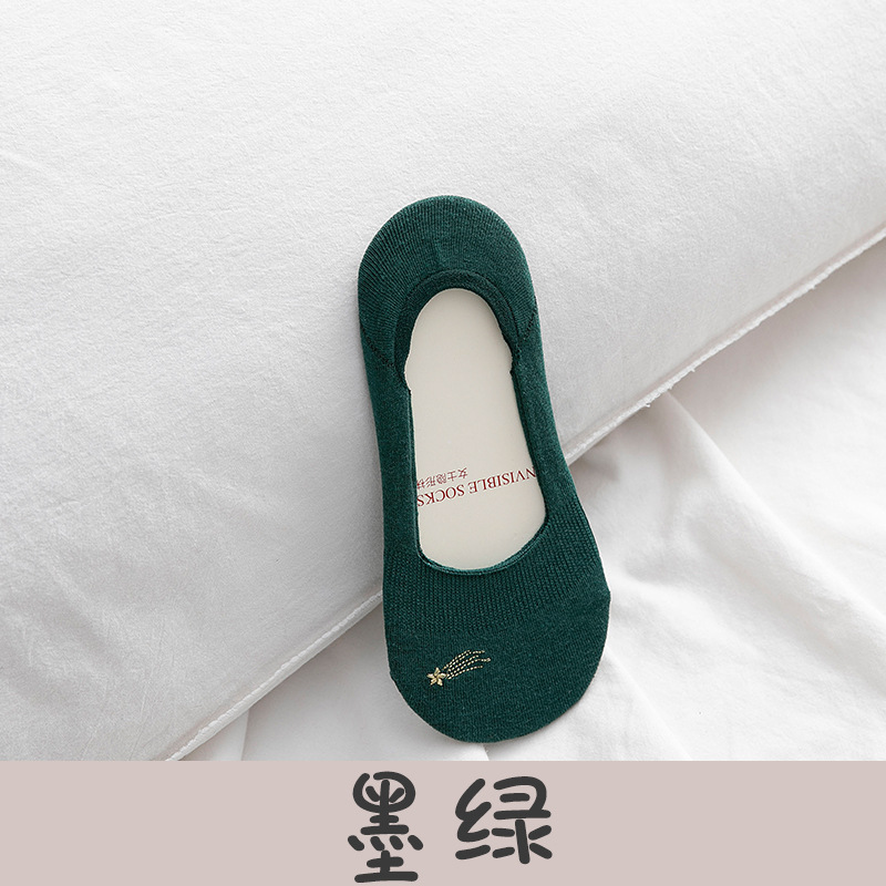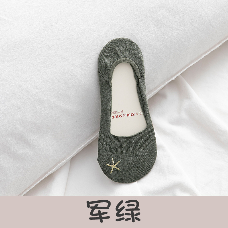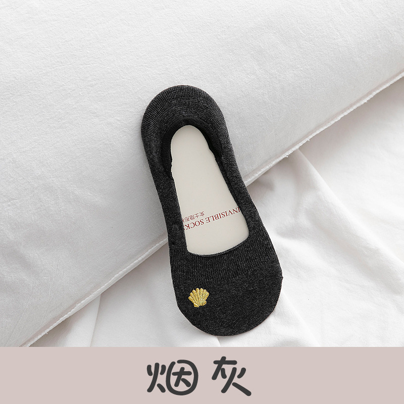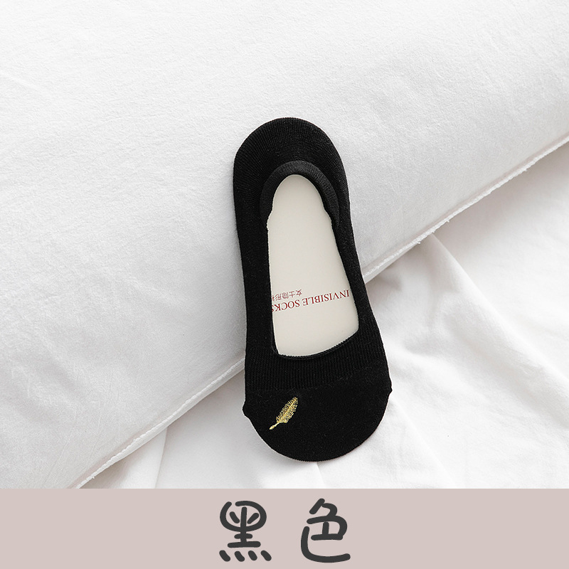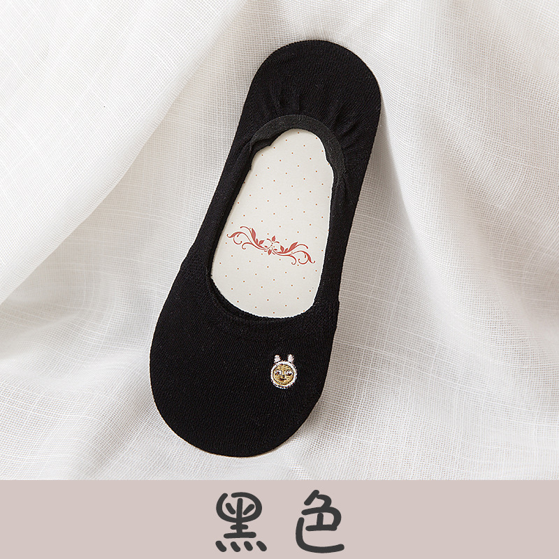 폭발 보트 양말 여성용 여름 얇은 여성용 양말 얕은 입 로우 탑 자수 미끄럼 방지 단색 면 양말 보이지 않는 양말