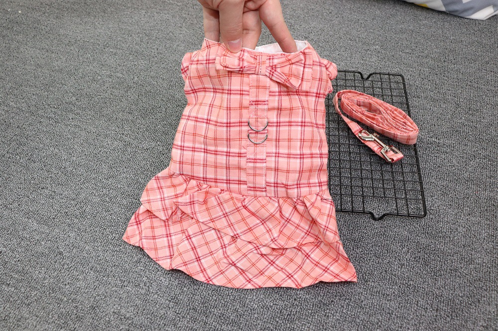애완동물 고양이 강아지 옷 여름 얇은 소형 포메라니안 비숑 테디 조끼 스커트 리드줄 포함 반팔