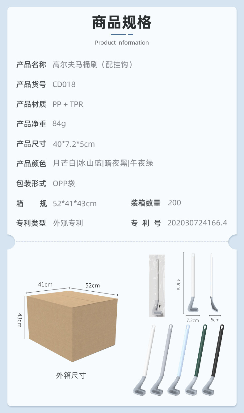 Xiangjia 골프 변기 브러시 가정용 화장실 긴 손잡이 부드러운 고무 변기 브러시 벽형 펀치 프리 청소 브러시스토어 가기