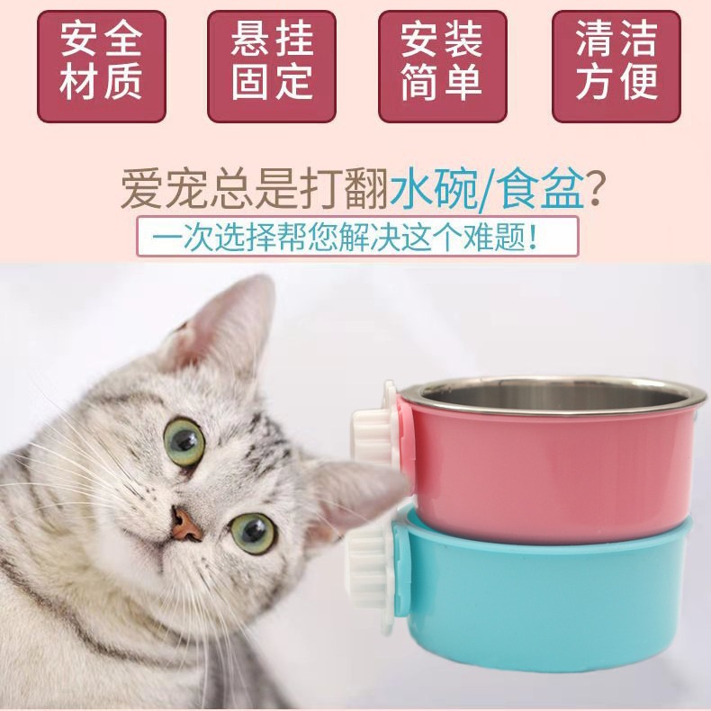 도매 애완 동물 고양이와 개 교수형 그릇 교수형 캔디 컬러 스테인레스 스틸 개 그릇은 애완 동물 교수형 케이지 그릇을 고정 할 수 있습니다