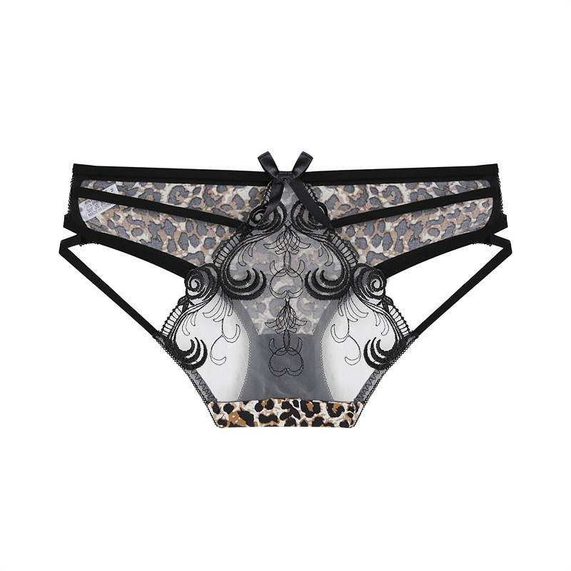 플러스 사이즈 아이스 실크 레오파드 무늬 섹시한 매력적인 숙녀 속옷 여성 투명 통기성 낮은 허리 브리프 수 놓은 바지 도매스토어 가기
