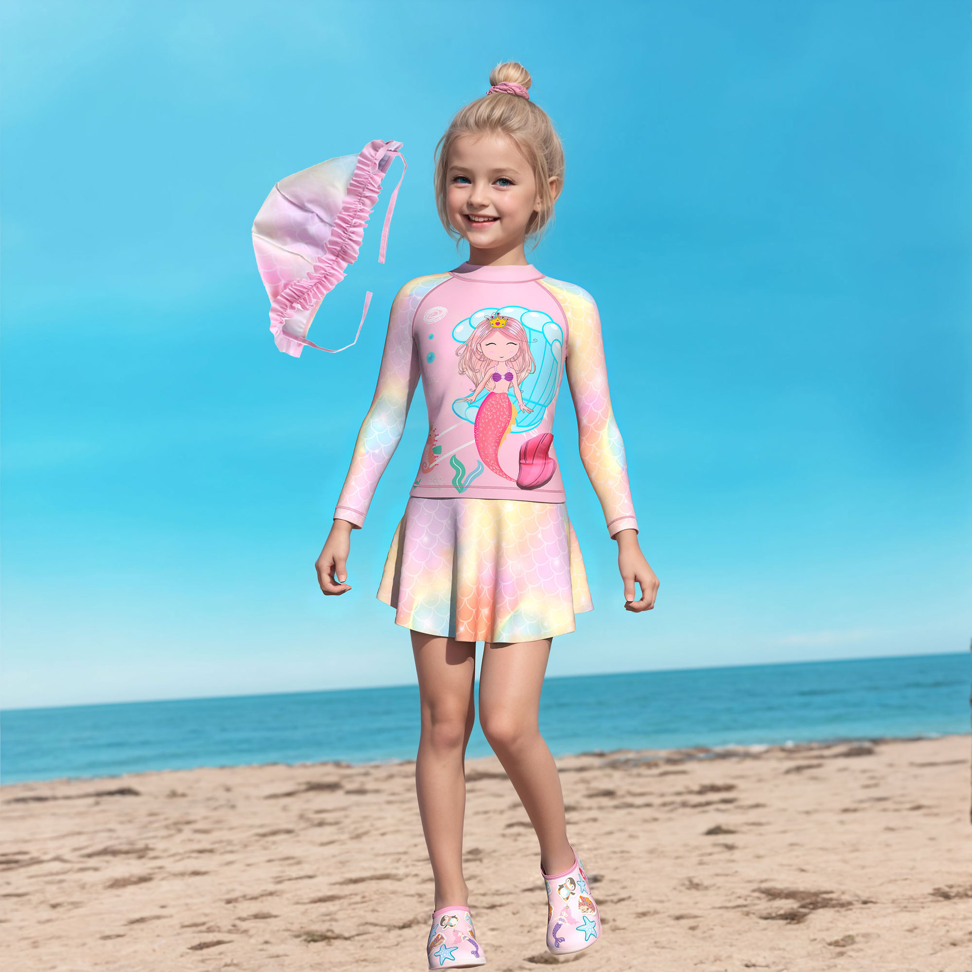 어린이 수영복 여성용 스플릿 인어 긴팔 수영복 대형 중형 아동용 입체 피쉬테일 복서 여아 수영복