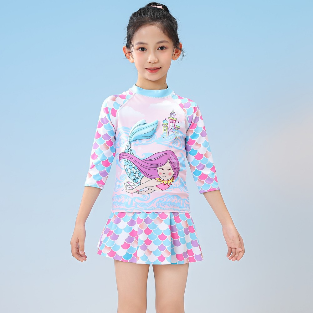 어린이 수영복 여성용 스플릿 인어 긴팔 수영복 대형 중형 아동용 입체 피쉬테일 복서 여아 수영복스토어 가기
