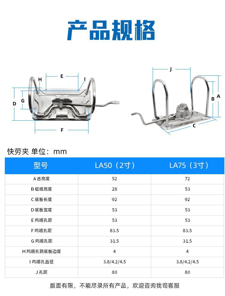 3inch 그리드형 빠른 클램핑 클립 LA75CM-A 금속 종이 클립 75MM 레버 클립 제조사 직공급 하드웨어 문구류 클립스토어 가기