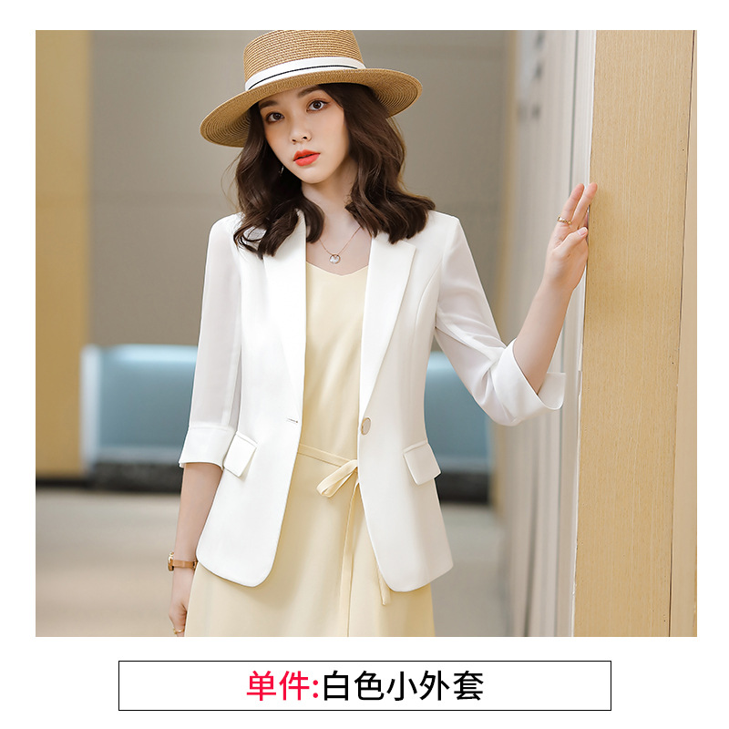 흰색 작은 세트 재킷 여자의 여름 얇은 봄과 가을 2021 새로운 캐주얼 여름 세트 일곱 소매 세트 탑스토어 가기