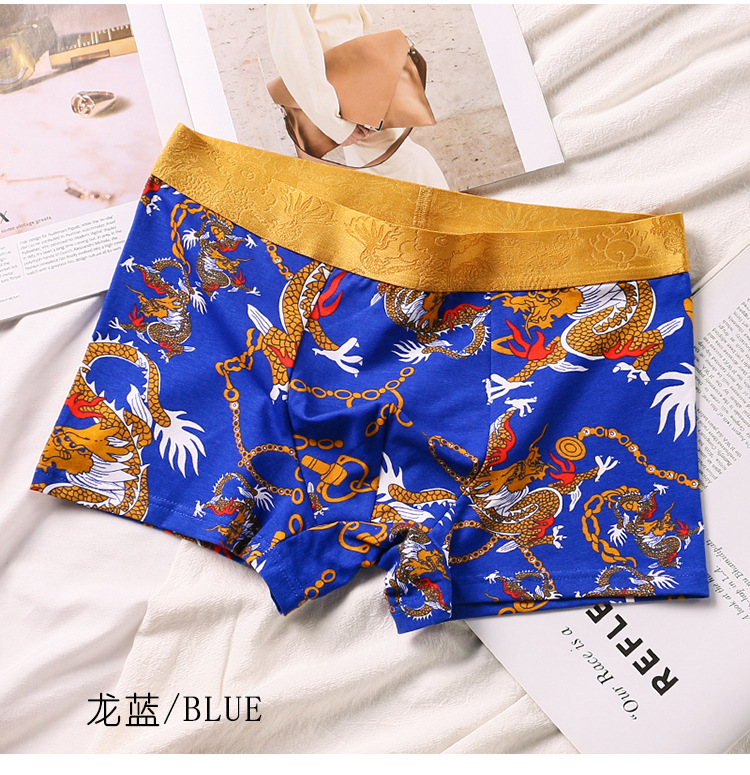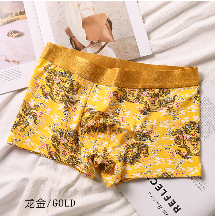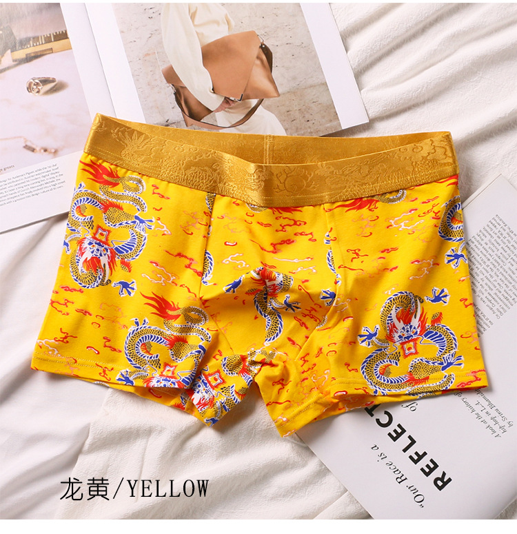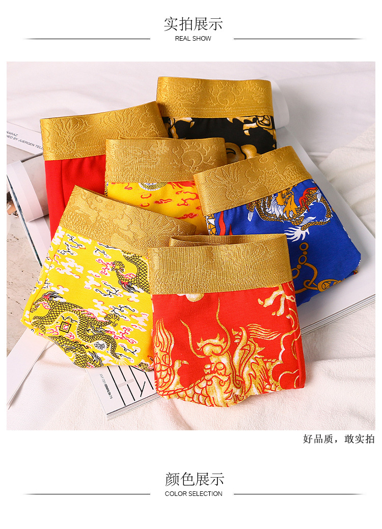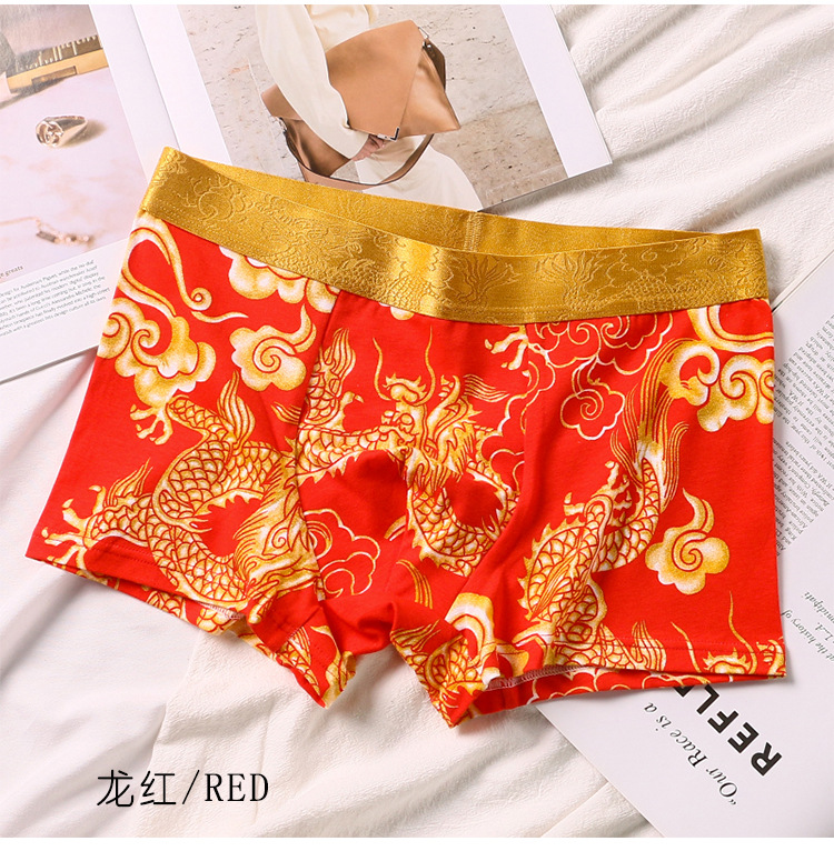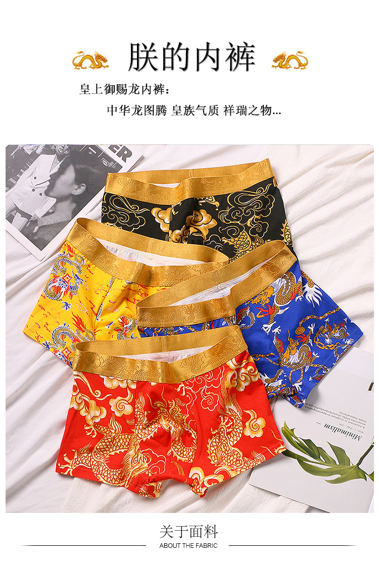 베밍니아 속옷 남자의 공격적인 빨간 속옷 사각 청소년 패션 드래곤 토템 복서 레드 트렌디스토어 가기