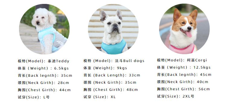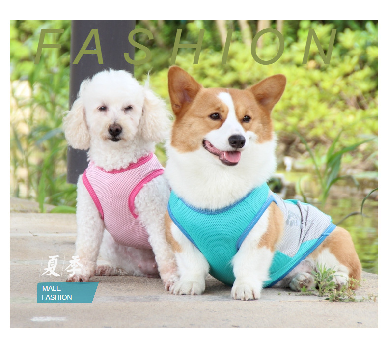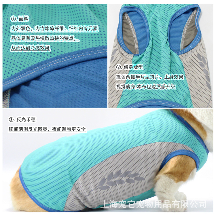 펫잇 크로스보더 애완동물 의류, 강아지 쿨링 조끼, 반사 쿨링 의류, 코기 프렌치불독 여름 얇은 옷