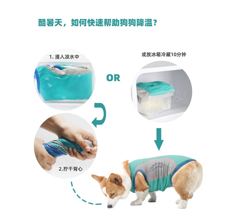 펫잇 크로스보더 애완동물 의류, 강아지 쿨링 조끼, 반사 쿨링 의류, 코기 프렌치불독 여름 얇은 옷스토어 가기