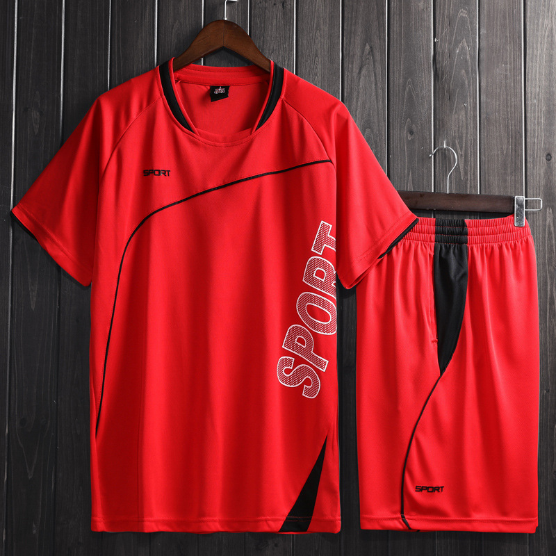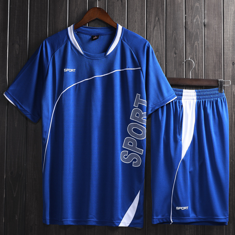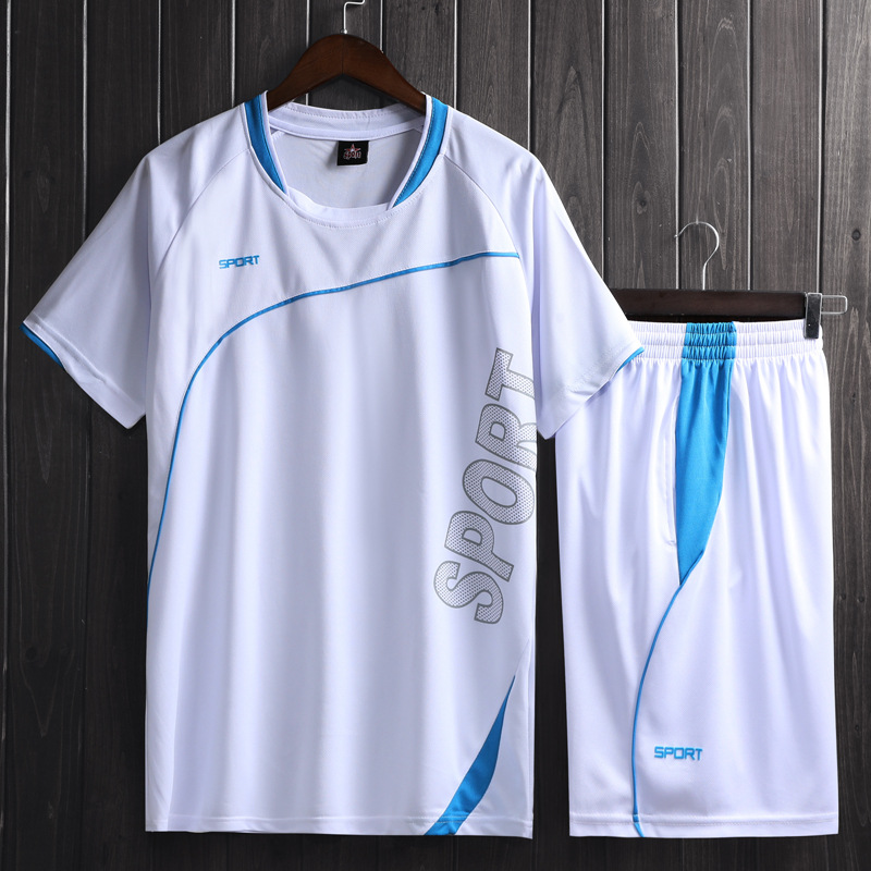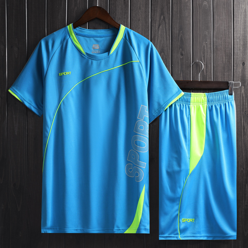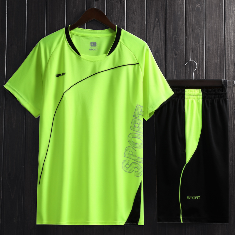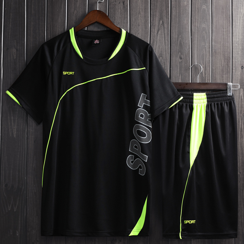 남자의 투피스 스포츠 세트 봄과 여름 달리기 피트니스 의류 아침 달리기 야간 훈련 축구 의류 남성 캐주얼 의류