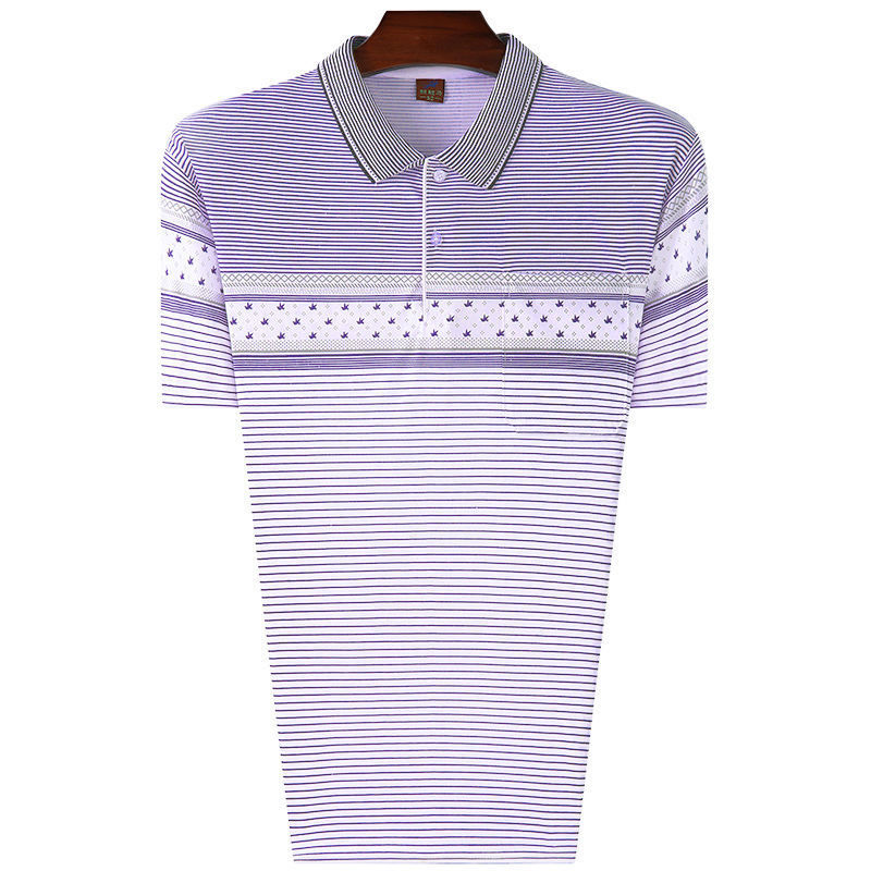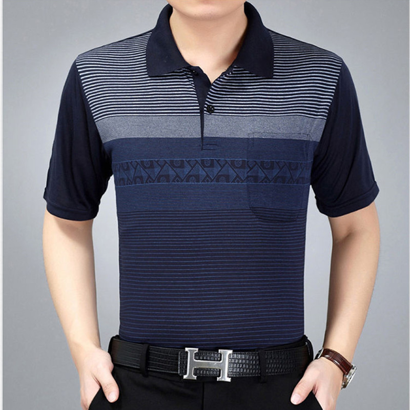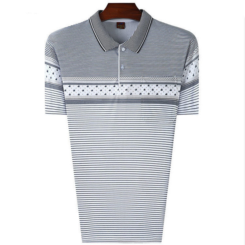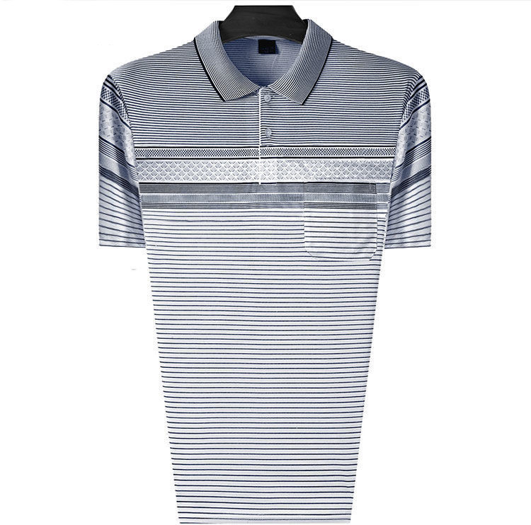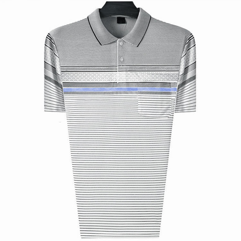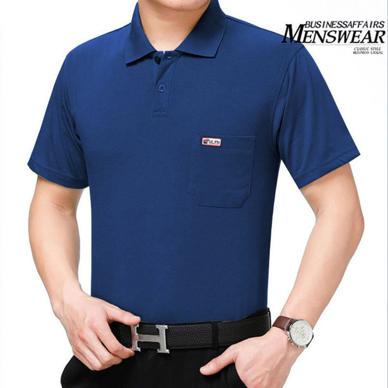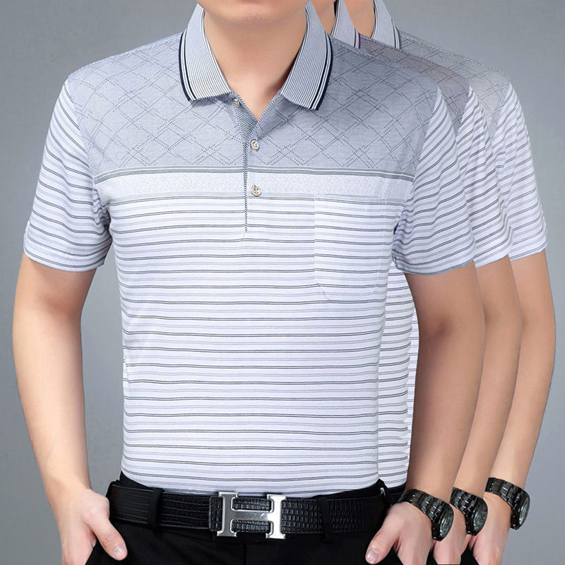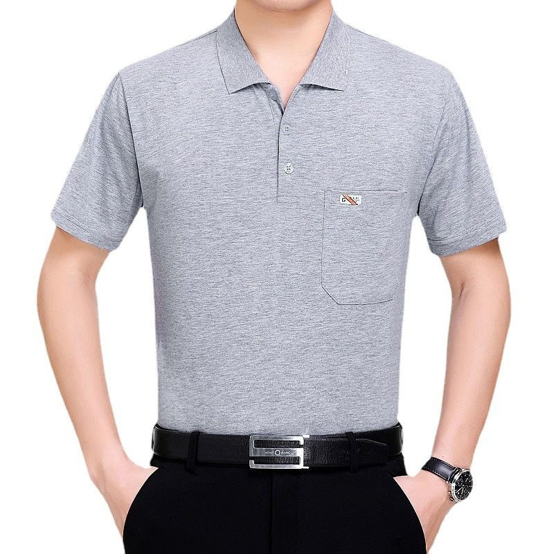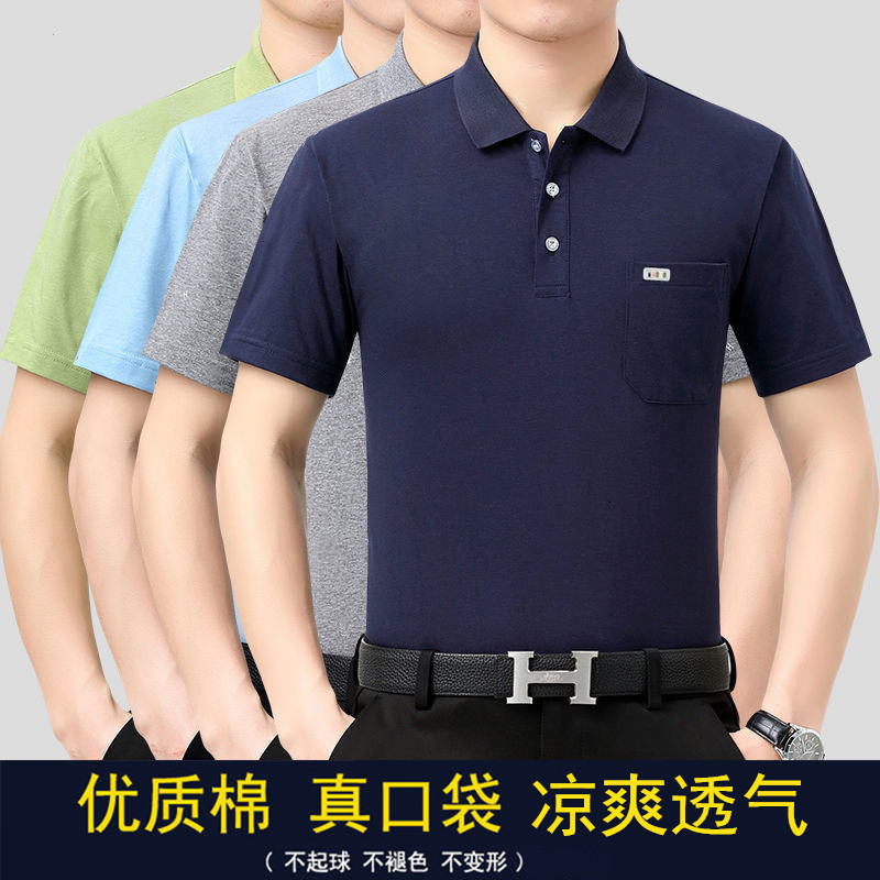 여름 남성용 반팔 티셔츠 남성용 라펠 폴로 셔츠 중년 및 노인 남성용 아이스 실크 반팔 루즈한 캐주얼 탑 의류