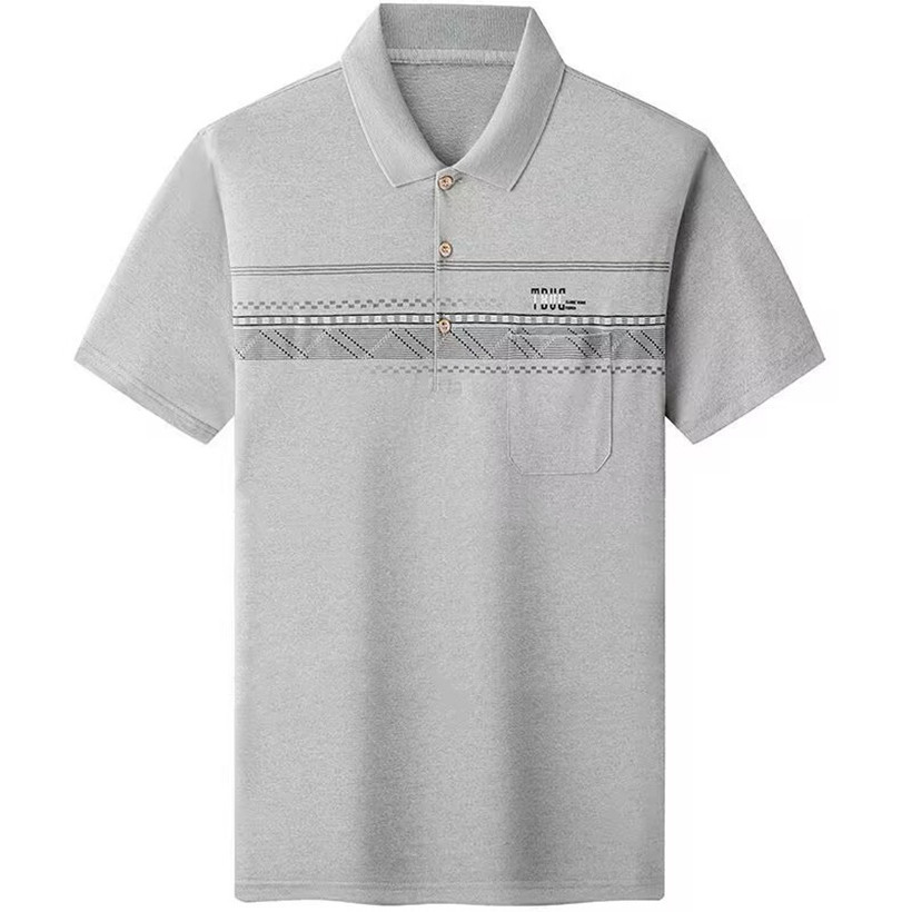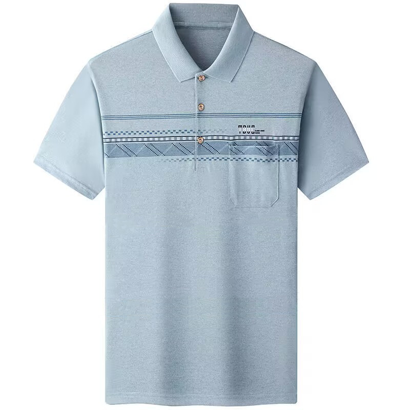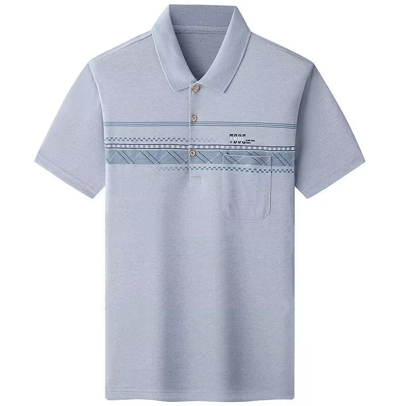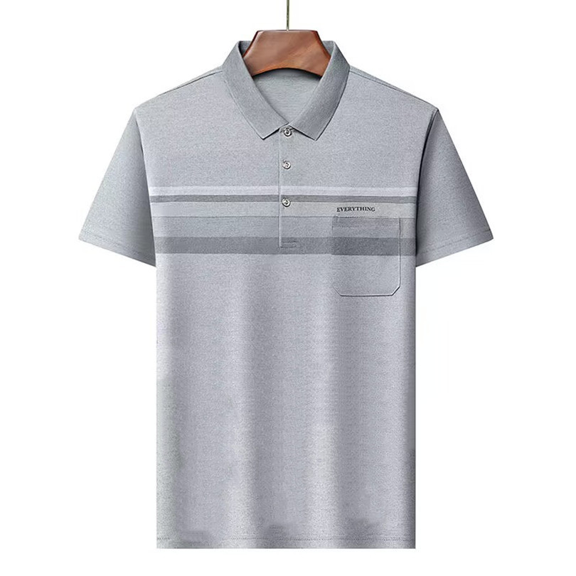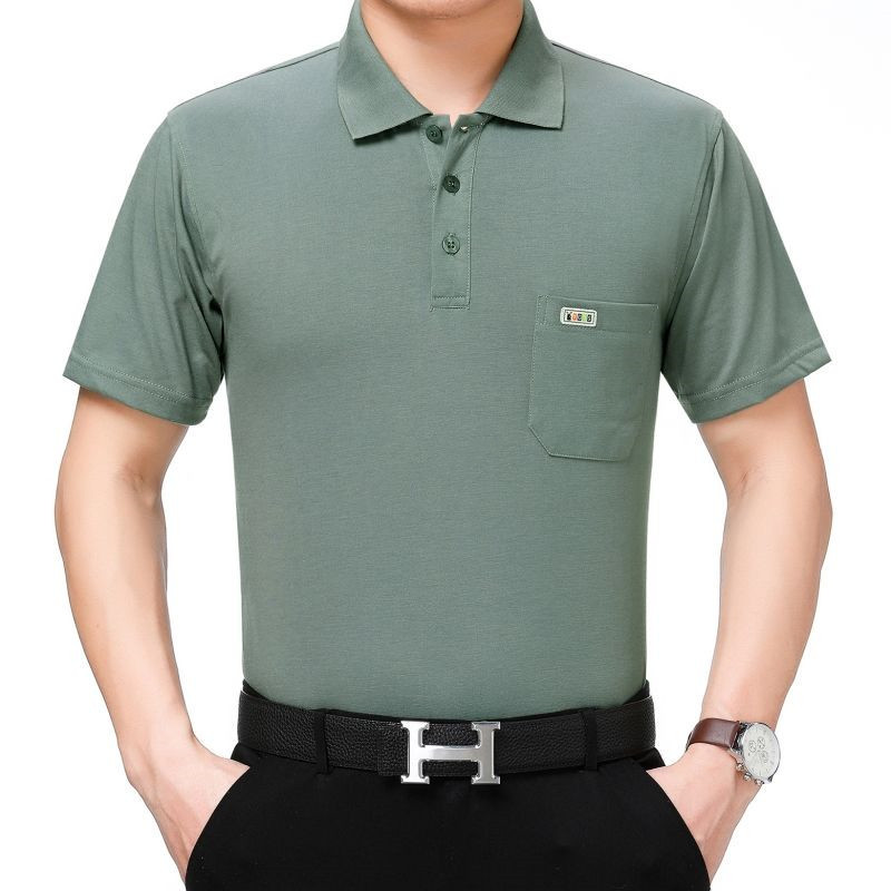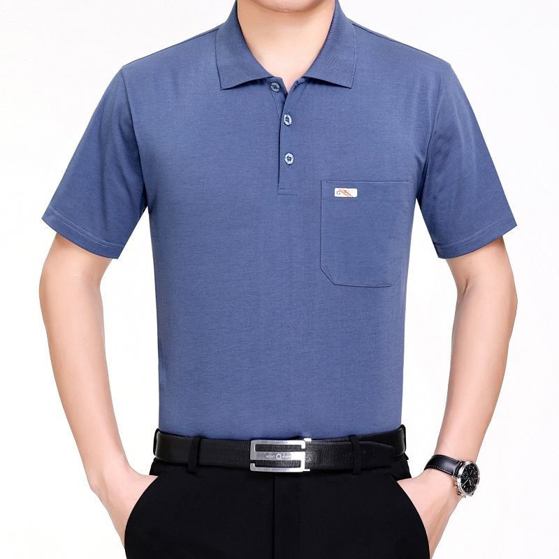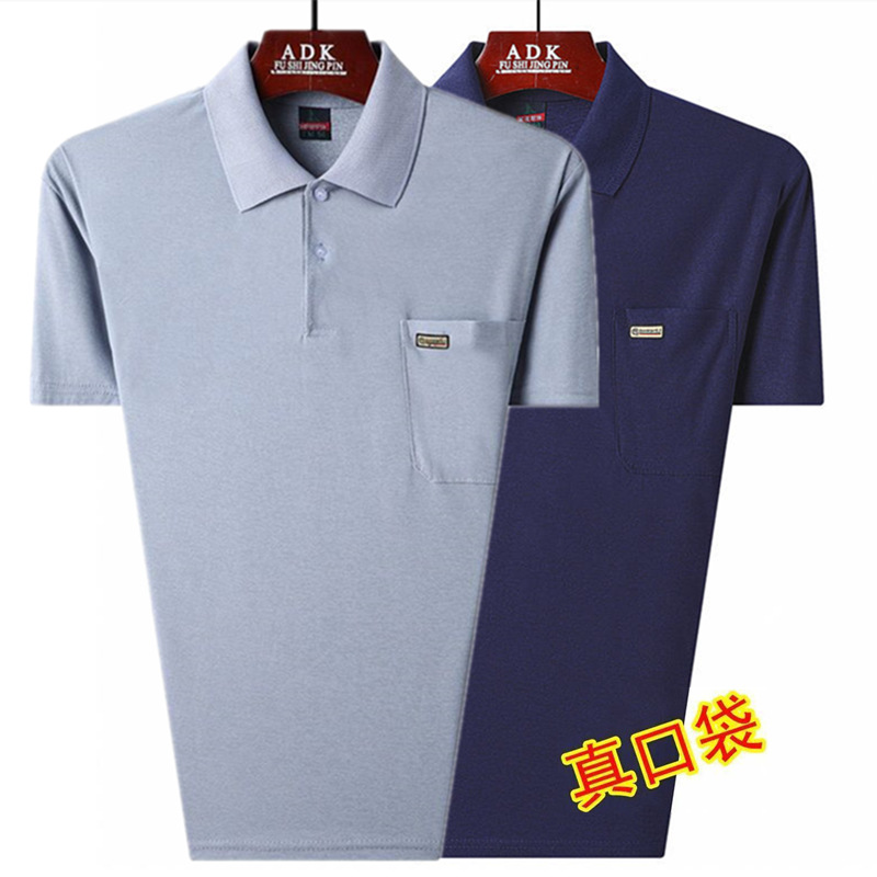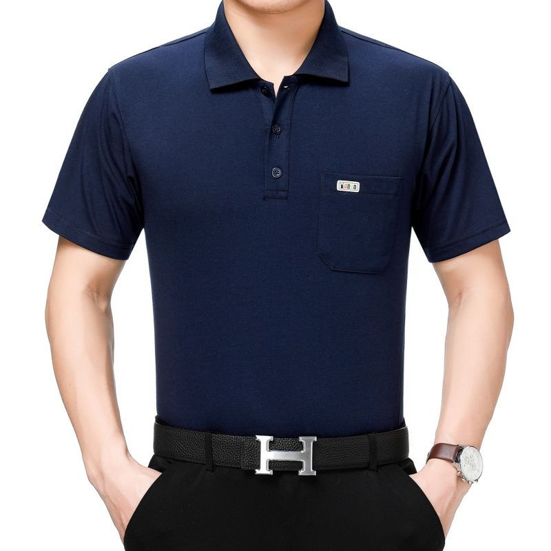 여름 남성용 반팔 티셔츠 남성용 라펠 폴로 셔츠 중년 및 노인 남성용 아이스 실크 반팔 루즈한 캐주얼 탑 의류스토어 가기