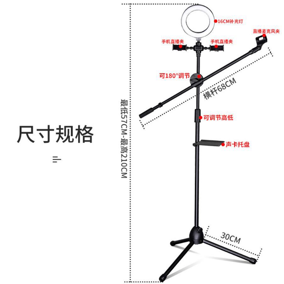 듀얼 카메라용 플로어 스탠드 삼각대 라이브 방송 보조 조명, 사진 촬영용 LED 스트리머 셀카 뷰티 라이트, 3색 조절 가능스토어 가기