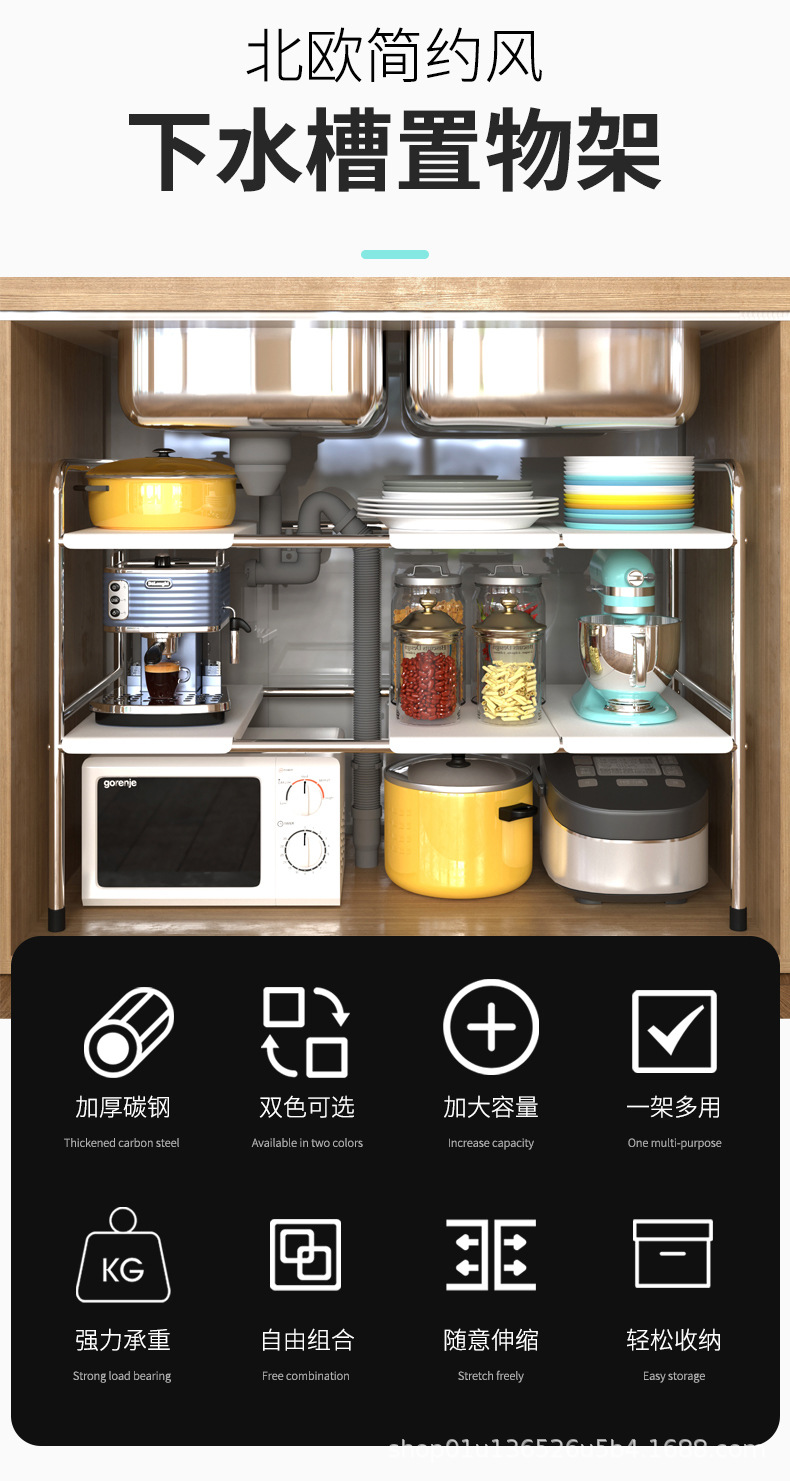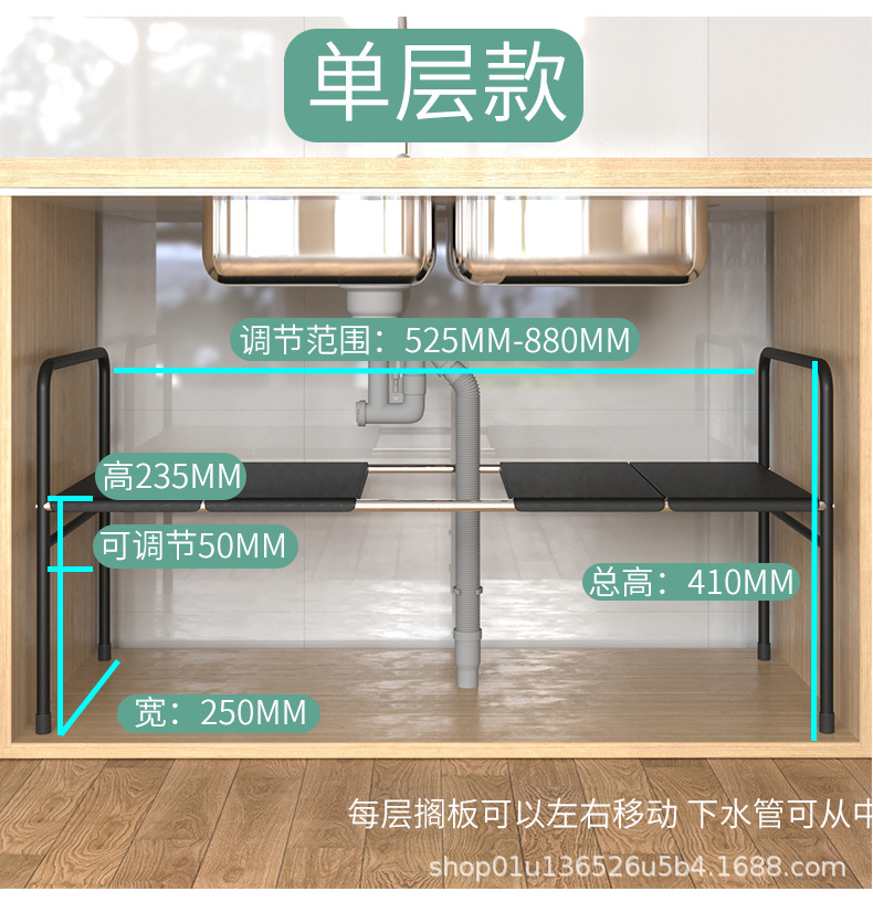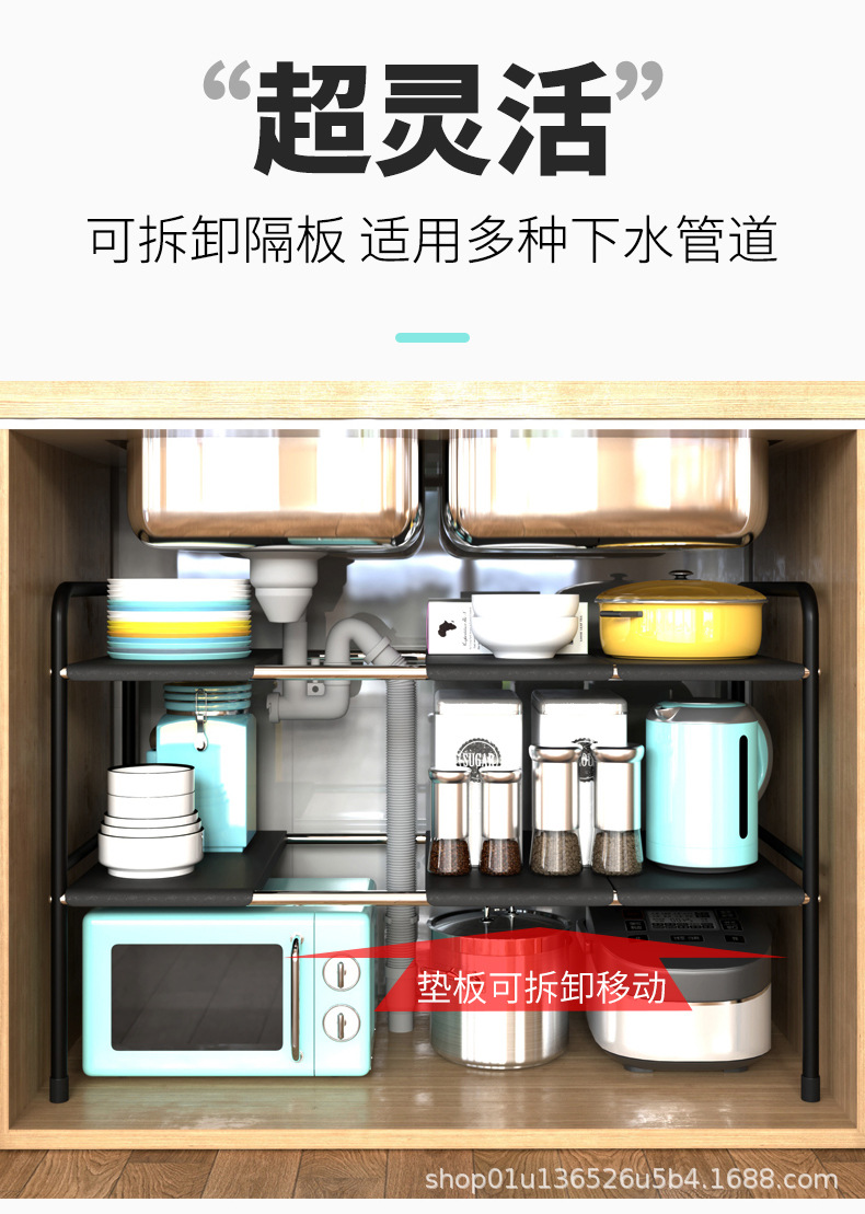 주방 확장 싱크대 보관 랙 가정용 캐비닛 계층화 파티션 랙 조리대 보관 냄비 선반