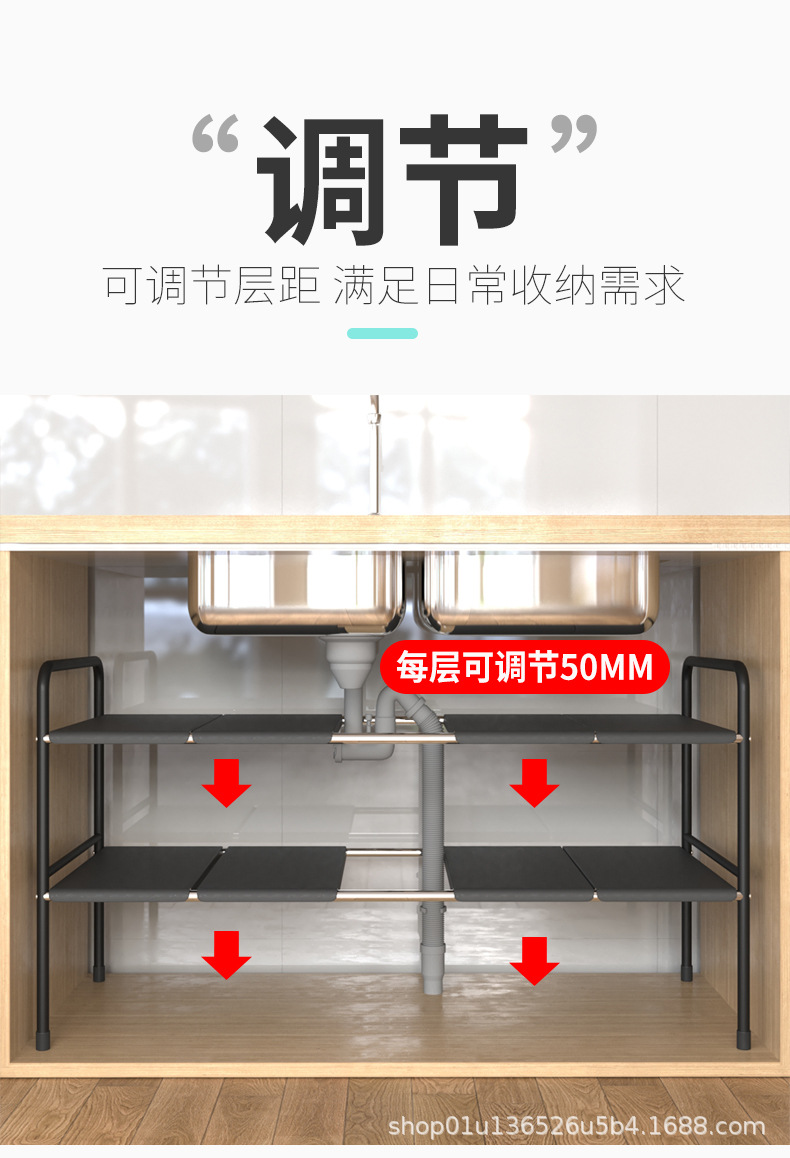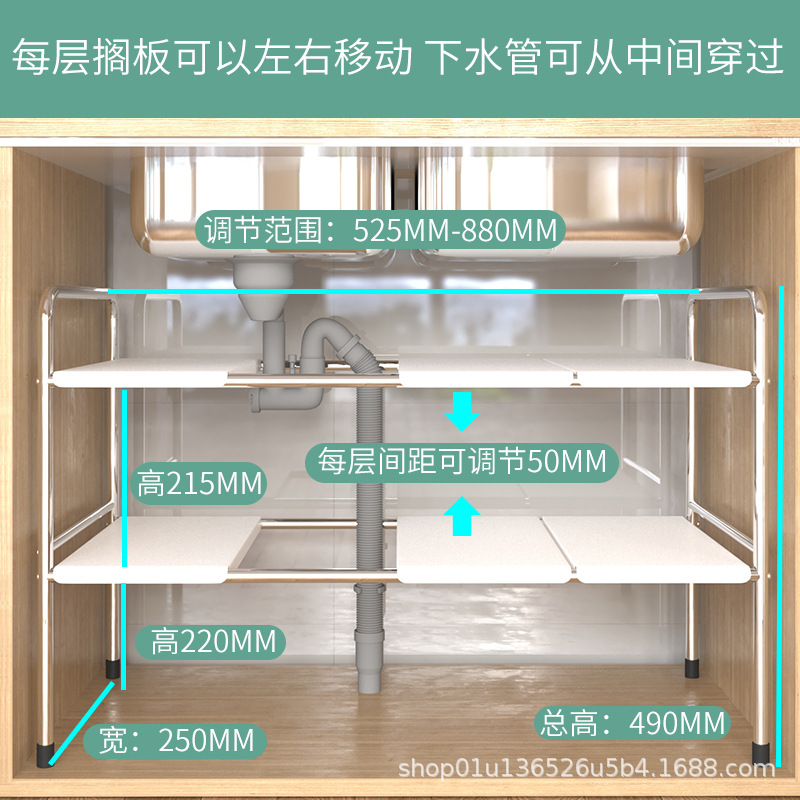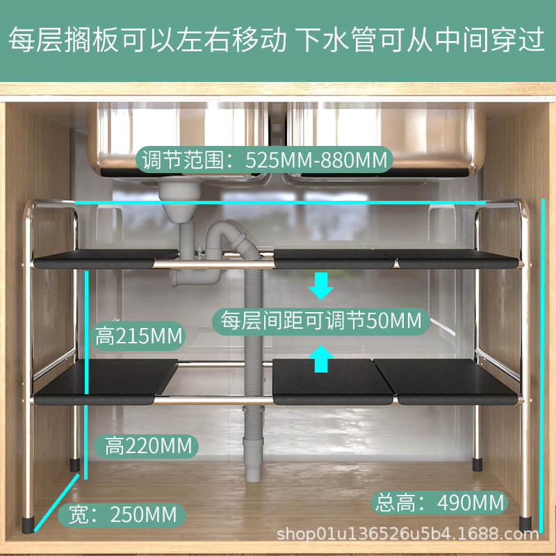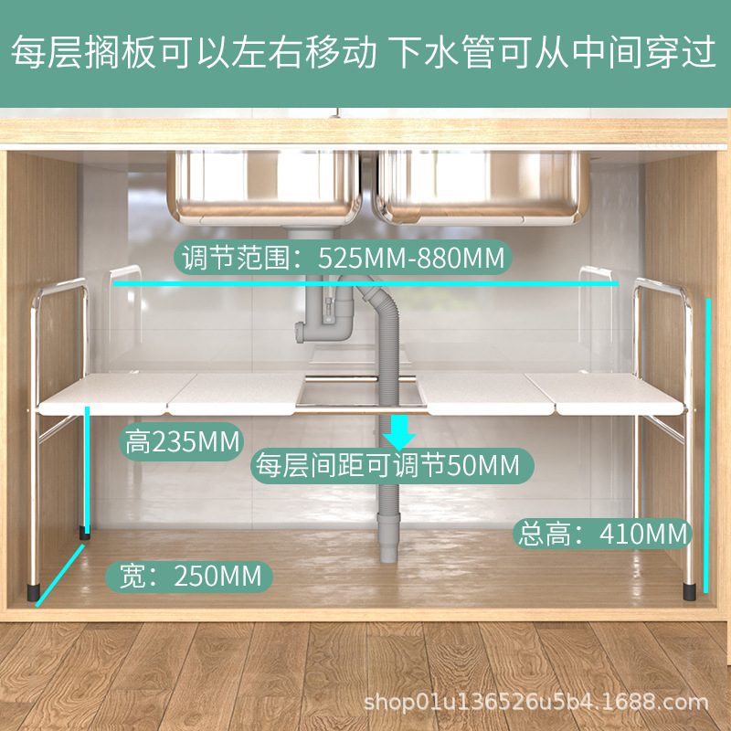 주방 확장 싱크대 보관 랙 가정용 캐비닛 계층화 파티션 랙 조리대 보관 냄비 선반스토어 가기
