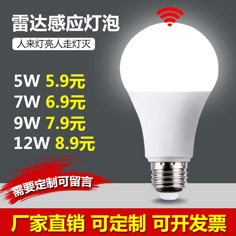 Led 인체 마이크로파 레이더 유도 램프 E27 전구 지능형 조명 제어 자동 스위치 전구 램프 제조 업체 도매스토어 가기