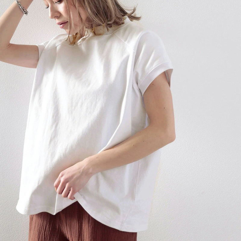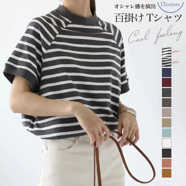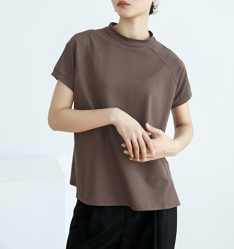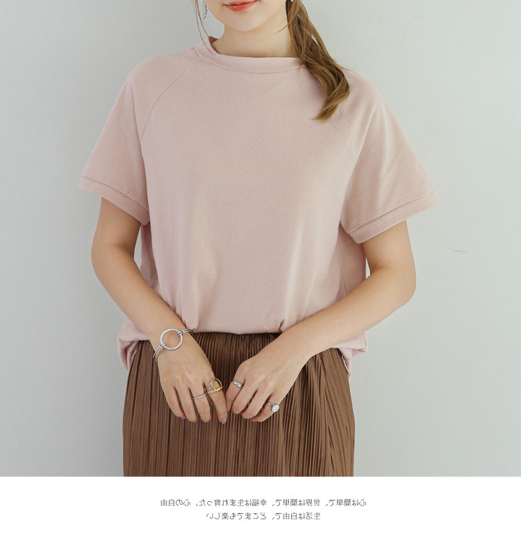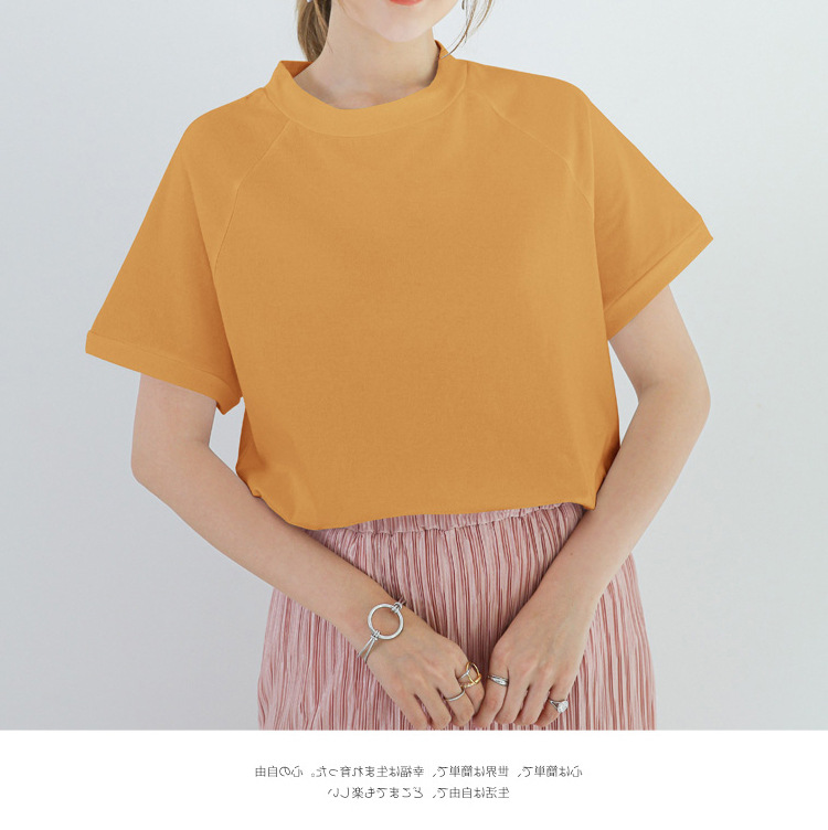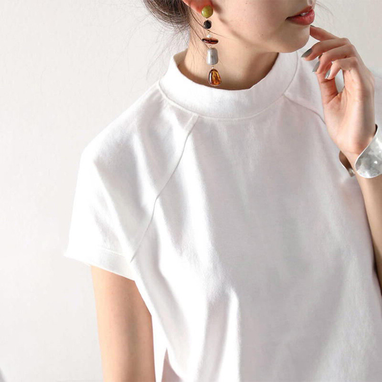 롯데 재고 여름 새로운 여성용 티셔츠 하프 하이 칼라 반소매 면 느슨한 탑 일본 아마존 크로스 보더