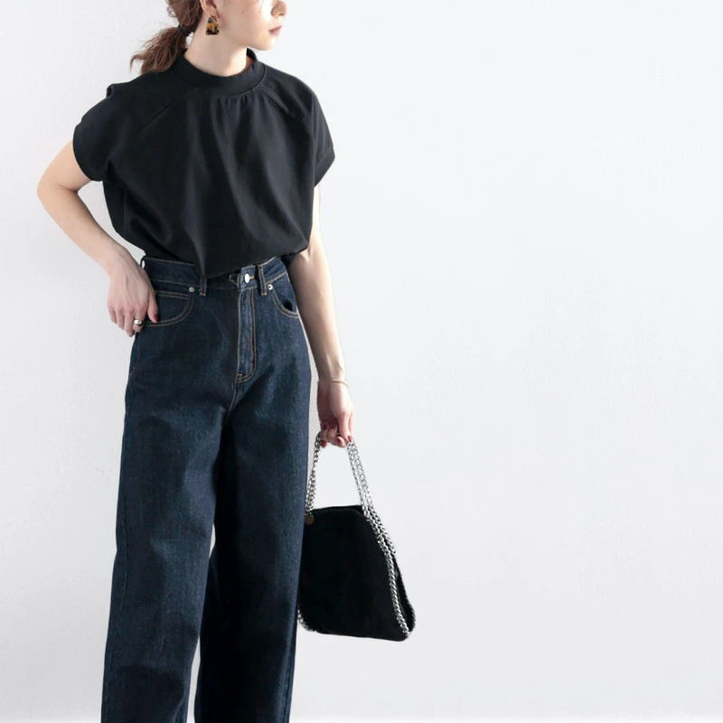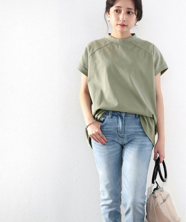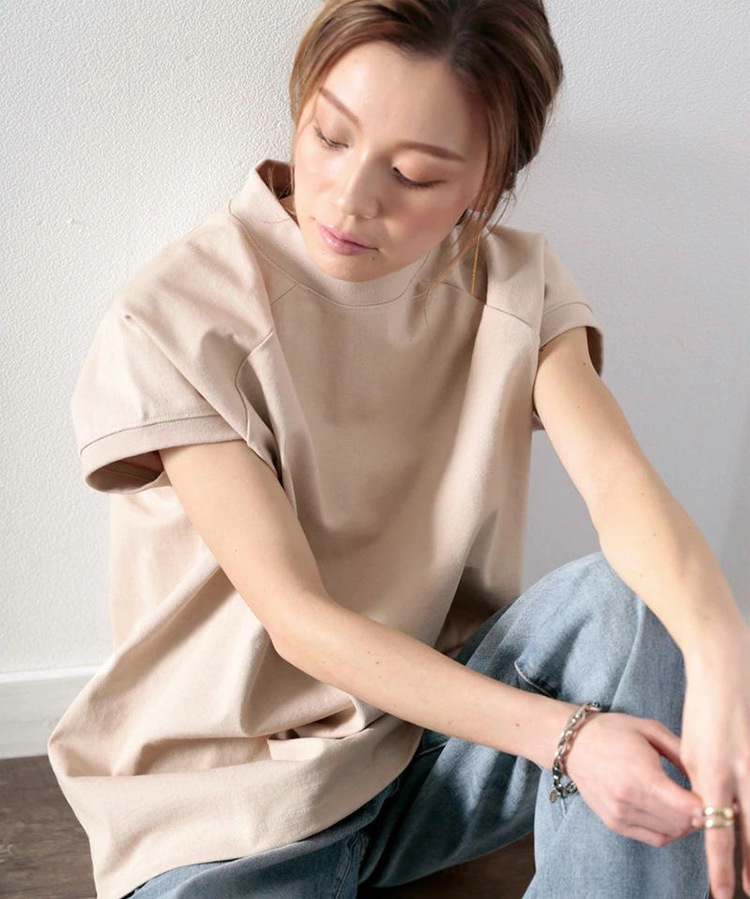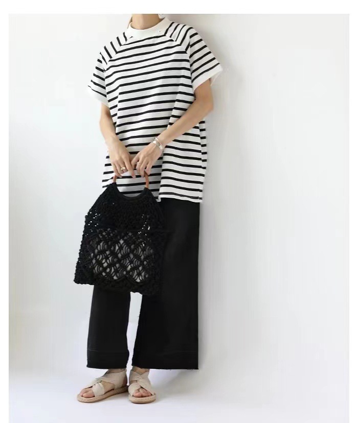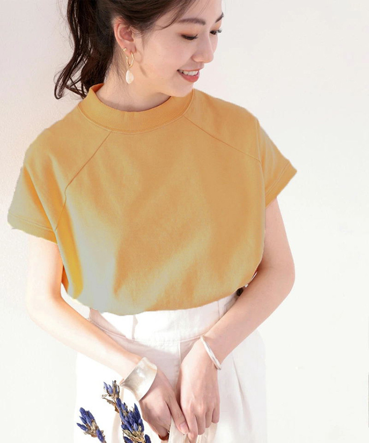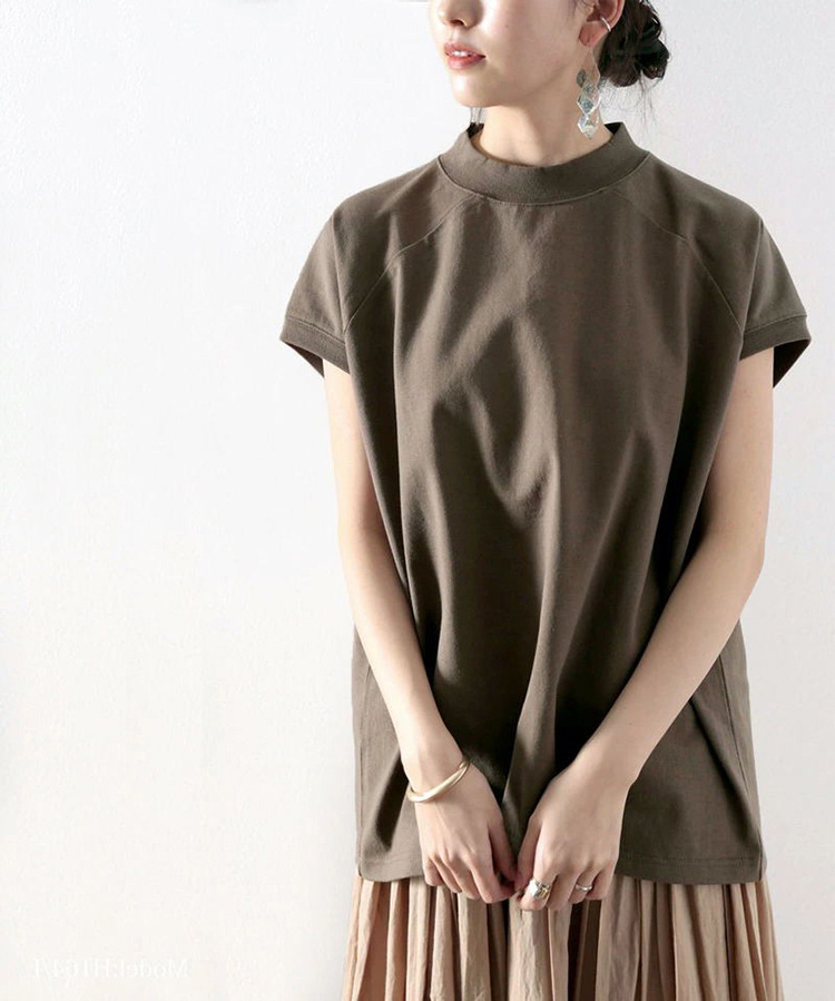 롯데 재고 여름 새로운 여성용 티셔츠 하프 하이 칼라 반소매 면 느슨한 탑 일본 아마존 크로스 보더
