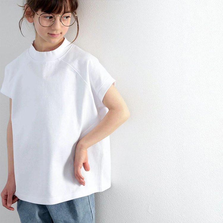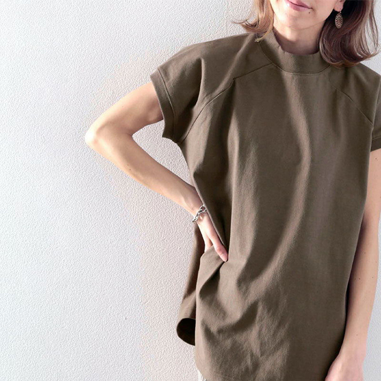 롯데 재고 여름 새로운 여성용 티셔츠 하프 하이 칼라 반소매 면 느슨한 탑 일본 아마존 크로스 보더스토어 가기