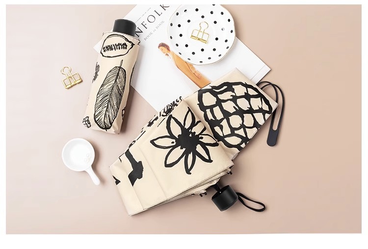 경량 소형 5 중 포켓 미니 우산 써니 우산 이중 사용 여성용 자외선 차단제 자외선 차단 접이식 태양 우산