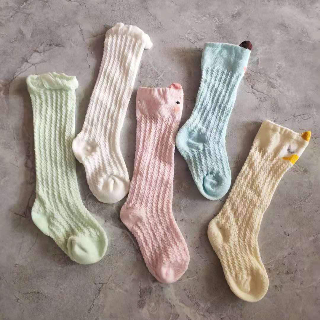아기 모기 방지 양말 아기 스타킹 봄과 여름 빗질면 0-3 세 신생아 얇은 양말 무릎 위 모기 방지 양말