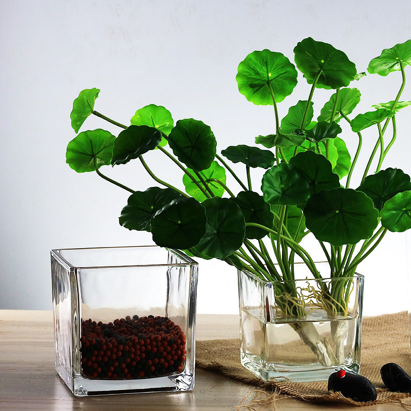 심플한 사각형 투명 유리병, 가정용 모델룸 탁상 장식품, 수경 재배용 녹색 식물 및 다육 식물 화분