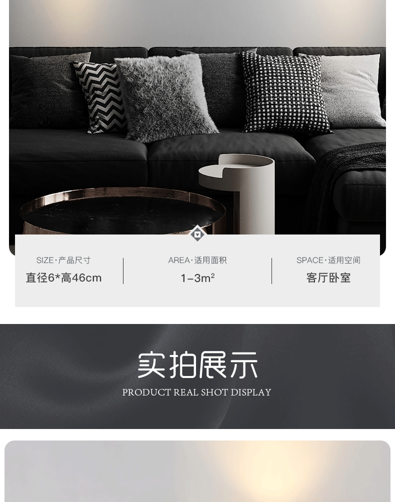 • 36*6cm 블랙-크리스탈 헤드-6 와트