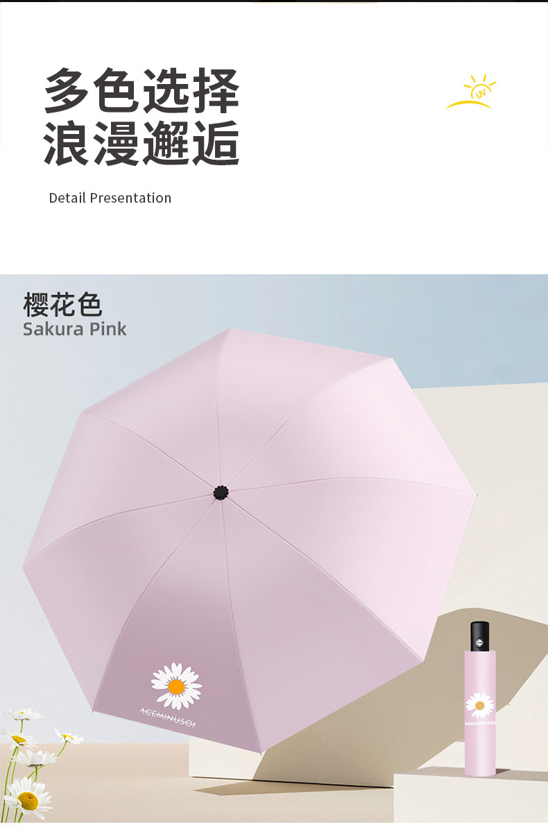 새로운 데이지 우산 수동형 견고한 양용(햇빛/비) 여성용 양산 자외선 차단 우산 도매