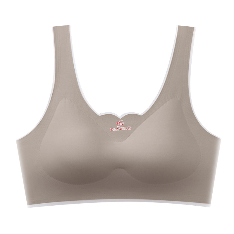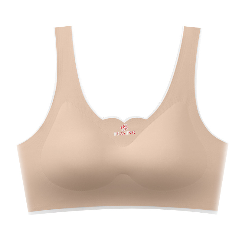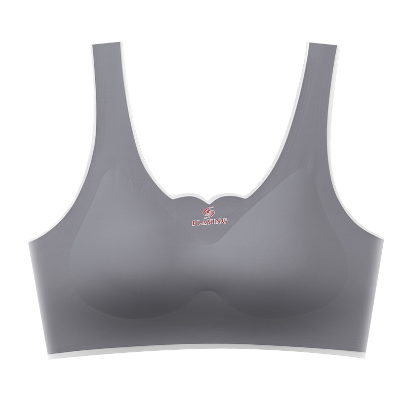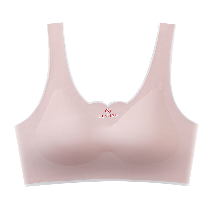 [독립 의상] New Ice Silk 원활한 원피스 속옷 여성 예쁜 백 랩 가슴 스포츠 소녀 라텍스 브라스토어 가기