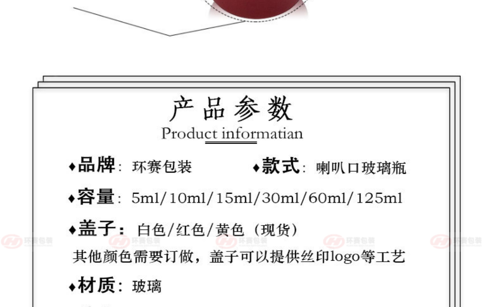 재고 5-125ml 다크 브라운 에센셜 오일 병 벨 입 기름 약 병 페놀 커버 유리 필수 액체 병 로고