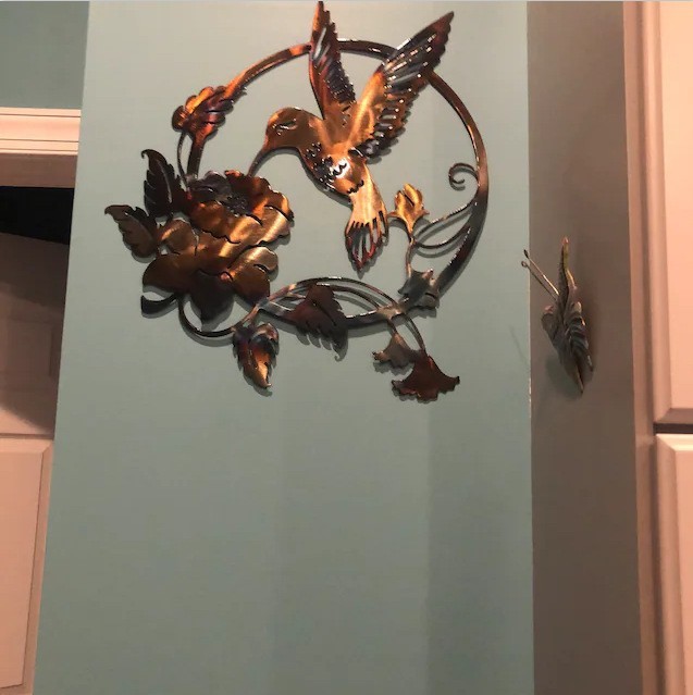 아마존 라운드 금속 새 벽 아트 데코 거실 벌새 꽃 야외 금속 벽 아트 서클스토어 가기
