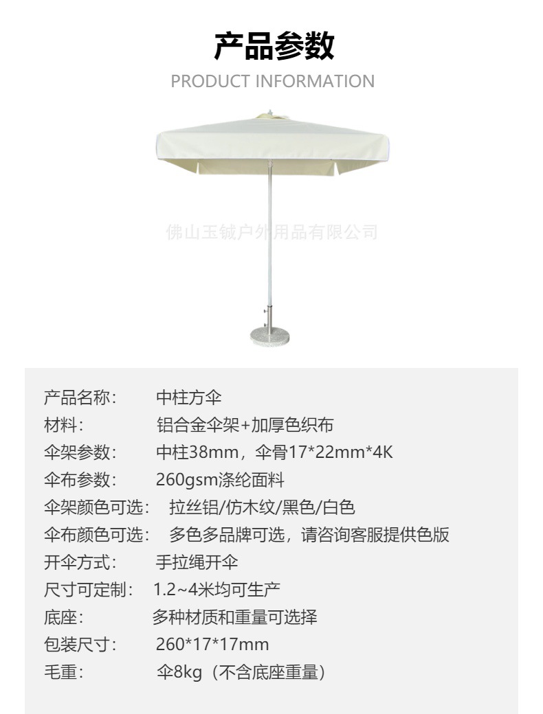 • 2.2* 2.2m 중앙 기둥 사각 우산 [베이스 없음]