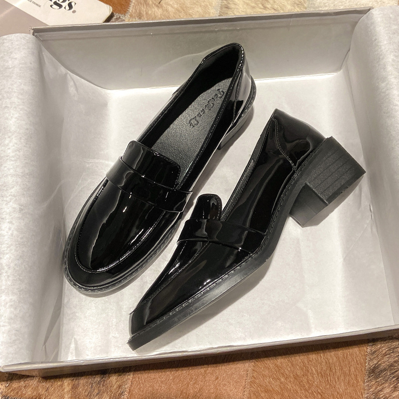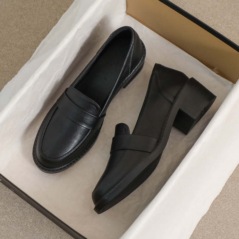 정품 가죽 영국 스타일 스몰 가죽 신발 여성 신발 2021 가을 새로운 모든 매치 미드 힐 블랙 작업 신발 로퍼스토어 가기