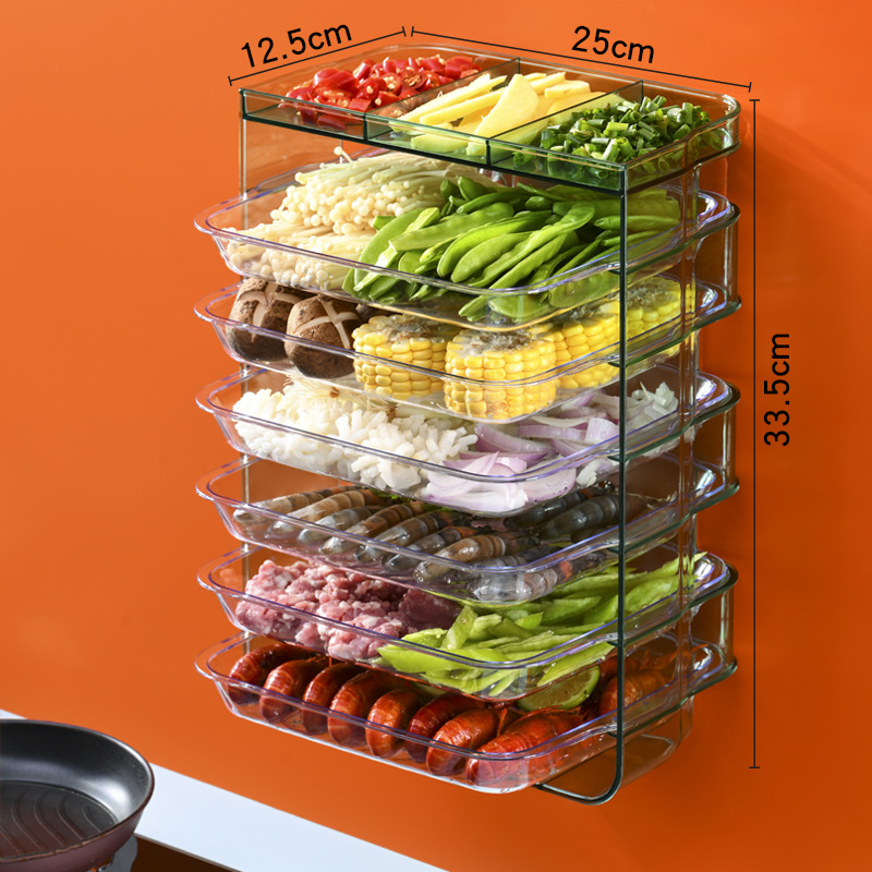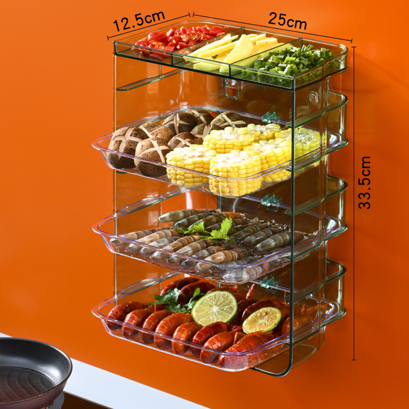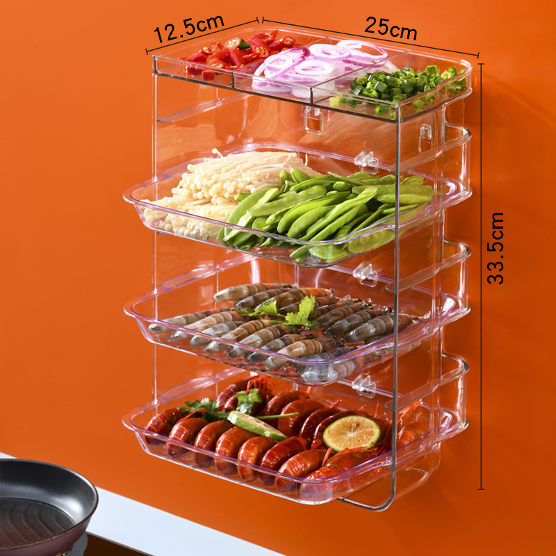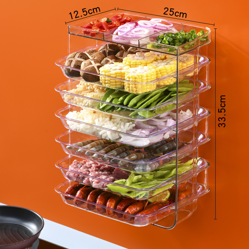 공장 직영 플라스틱 천공되지 않은 직사각형 주방 냄비 접시 투명 벽걸이 보관 랙 휴대용 식품 준비 접시스토어 가기