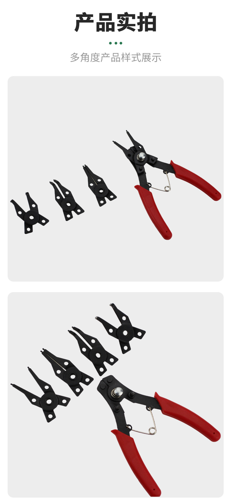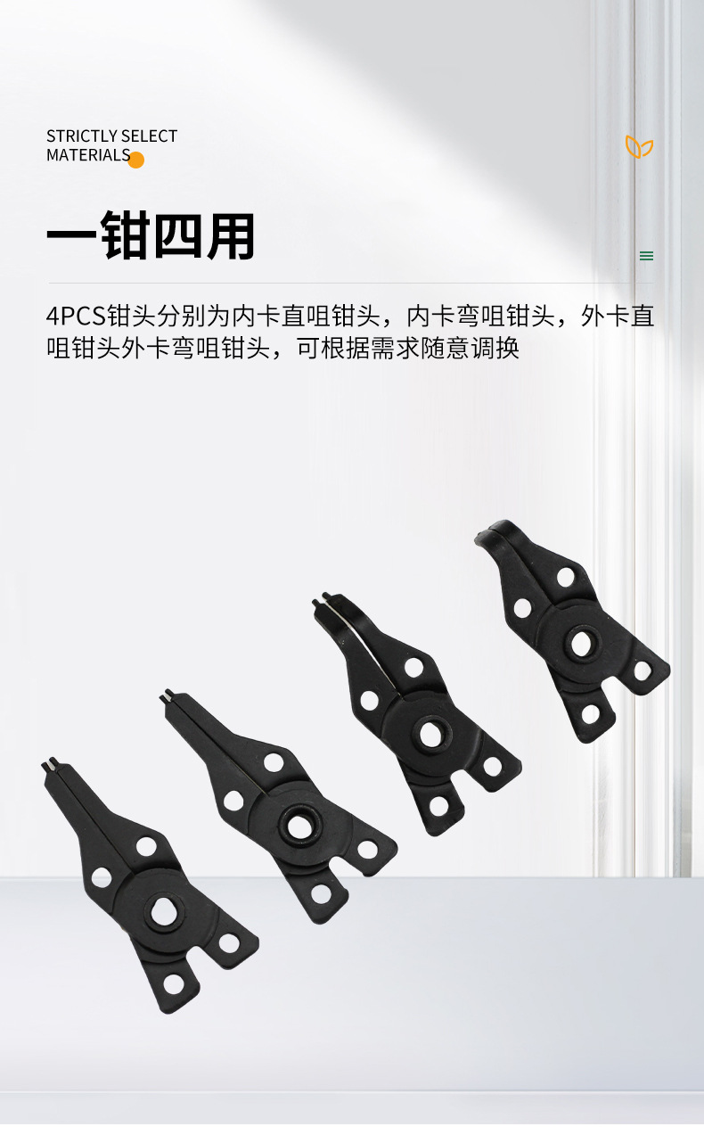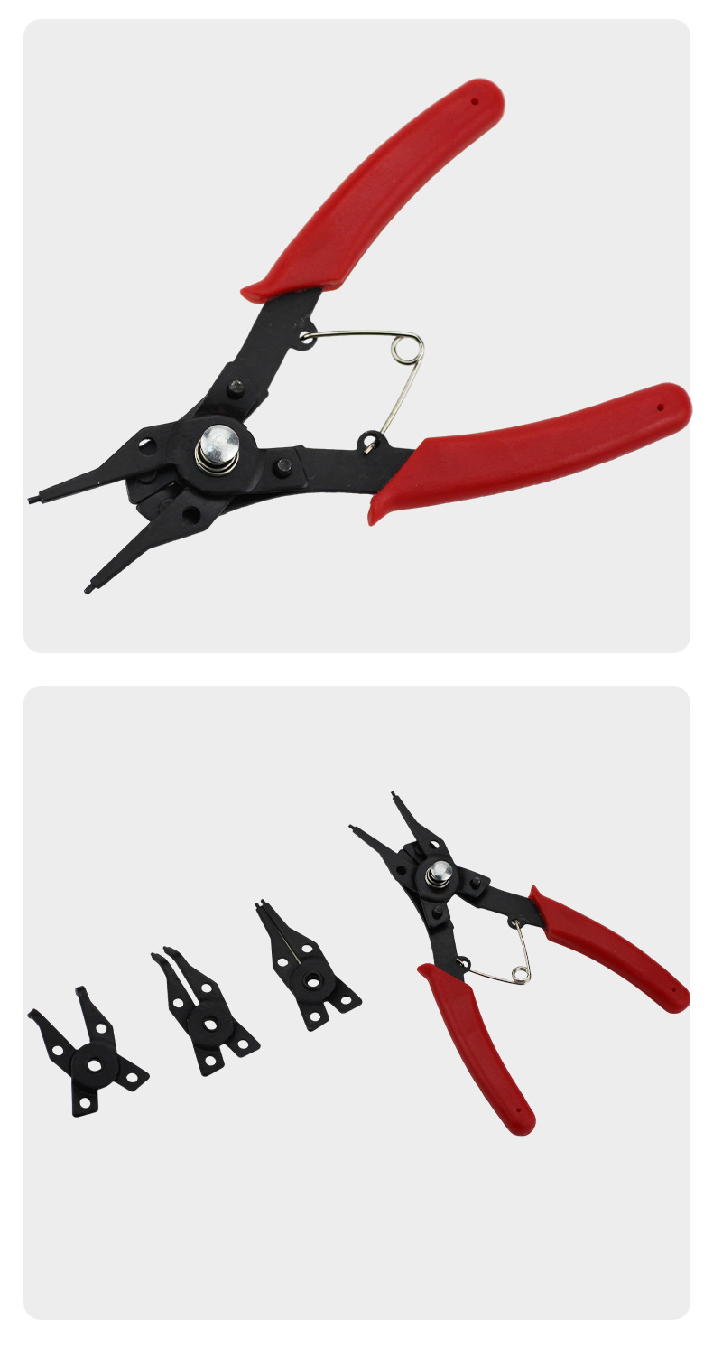 4 대 1 빨간색 스냅 링 펜치 클립 클램프 가위 펜치 4 헤드 유지 링 펜치 스프링 분해 및 내부 및 외부 사용을위한 어셈블리