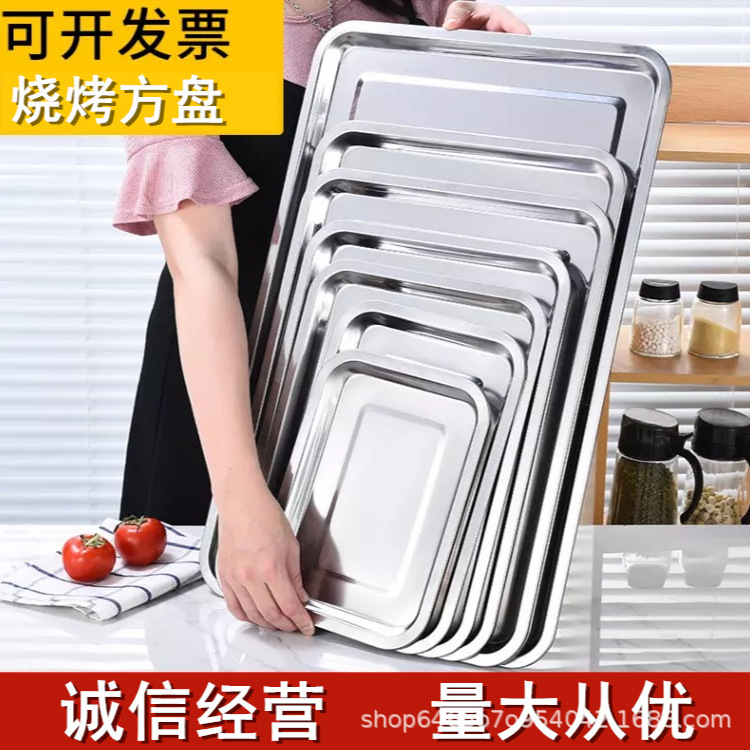 스테인레스 스틸 사각 접시 바베큐 접시 트레이 접시 상업용 직사각형 접시 구운 생선 접시 두꺼운 철 접시 쌀 크기 접시스토어 가기
