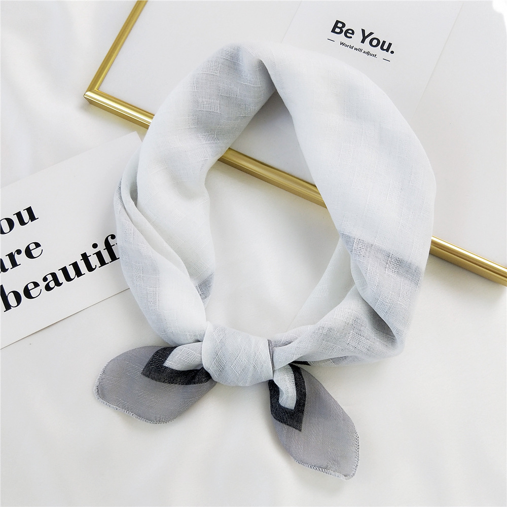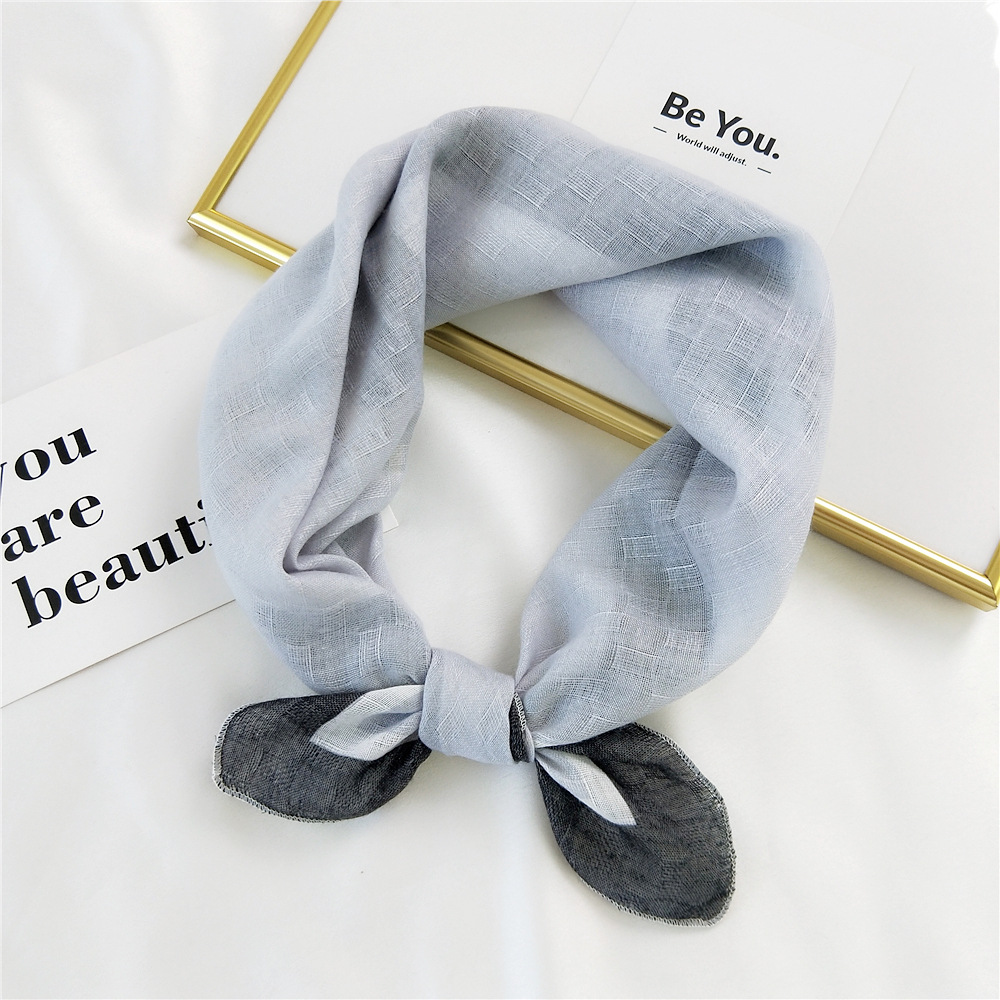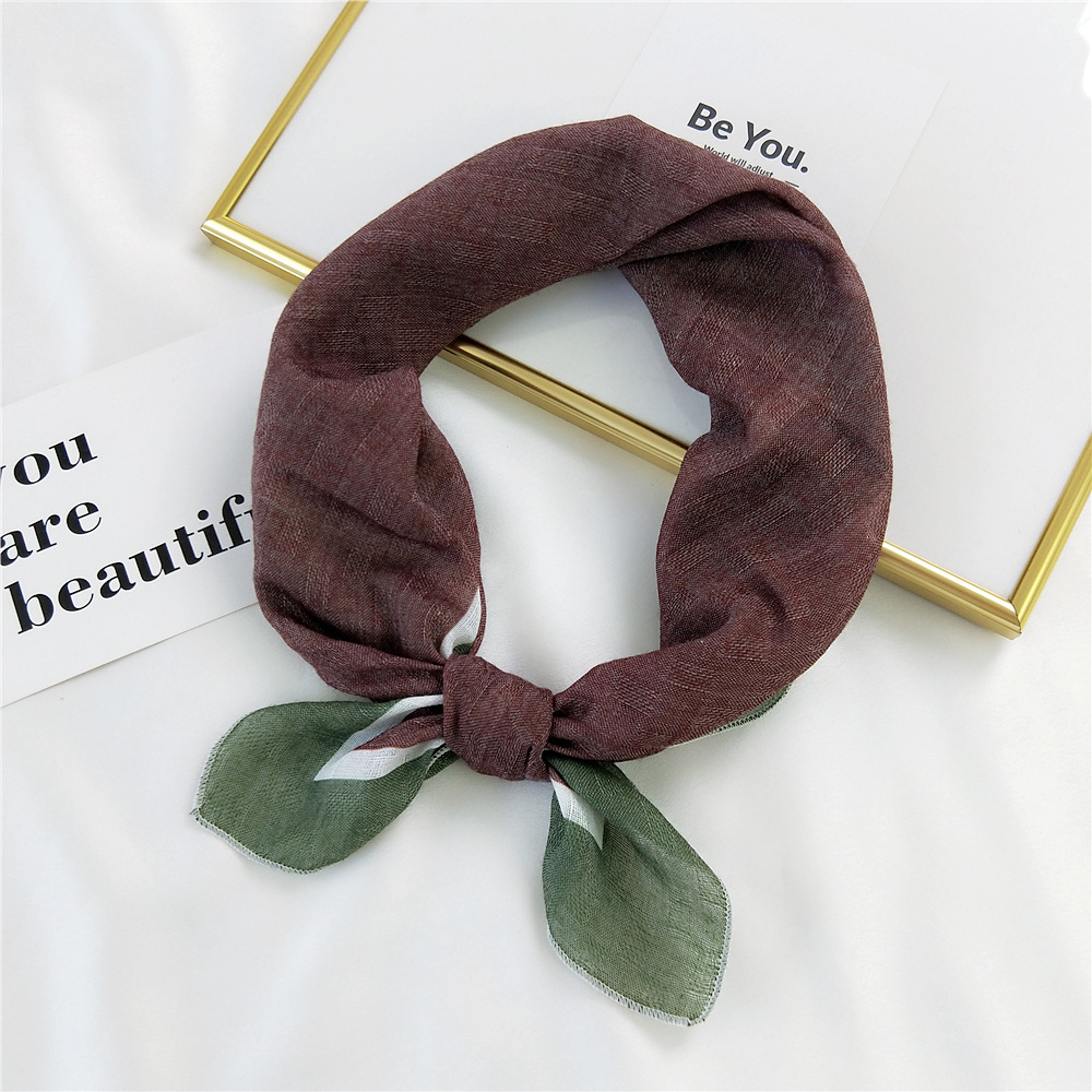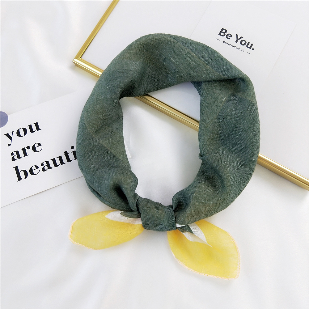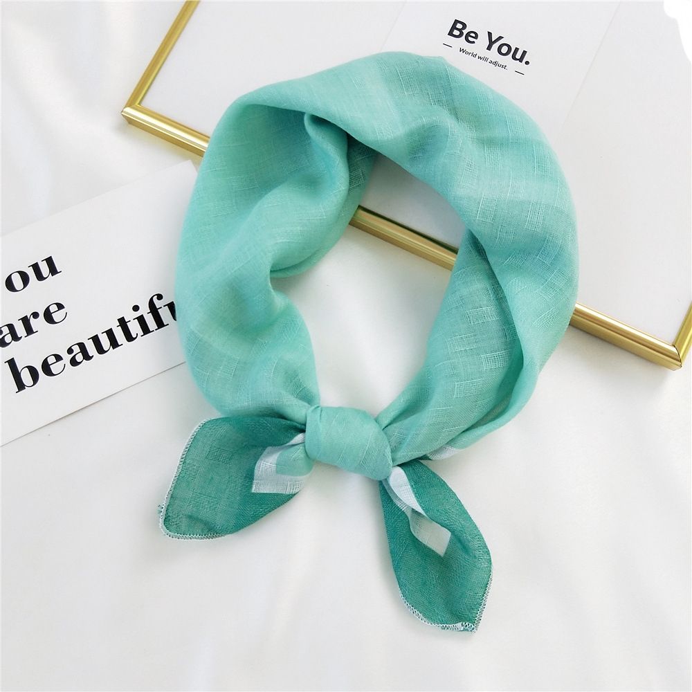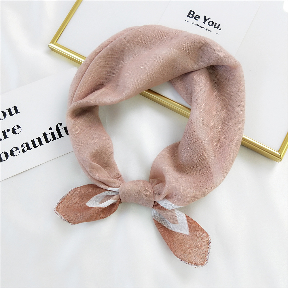 단색 면과 린넨 작은 사각 스카프 여자의 봄과 가을 여름 한국 신선한 한국 스타일 문학 스카프 머리 스카프