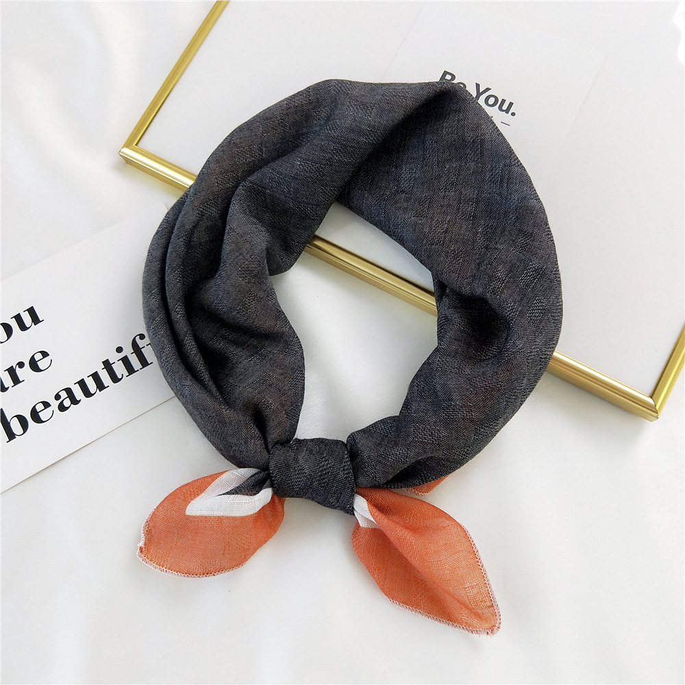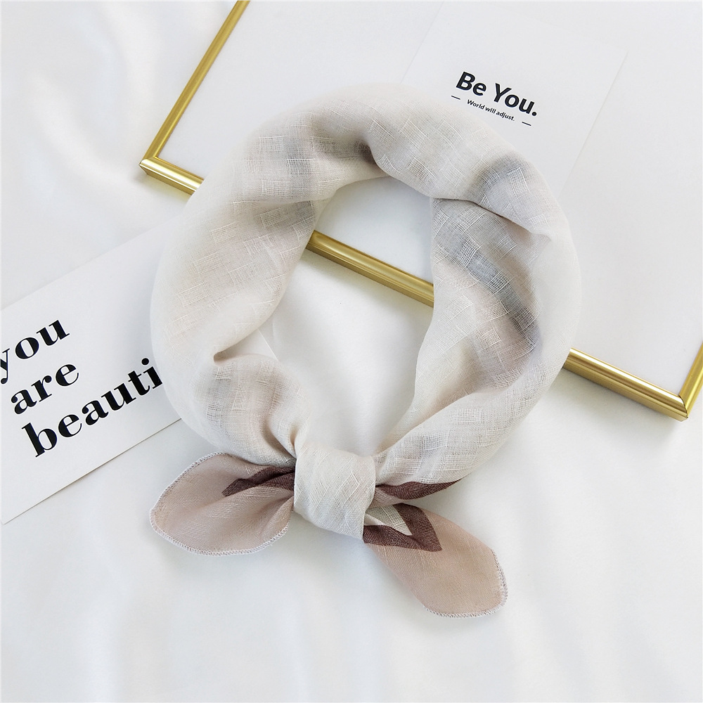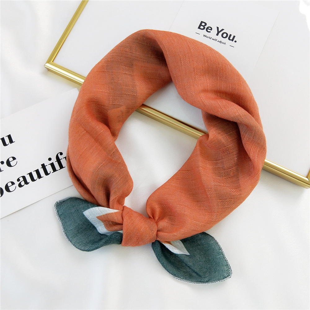 단색 면과 린넨 작은 사각 스카프 여자의 봄과 가을 여름 한국 신선한 한국 스타일 문학 스카프 머리 스카프스토어 가기