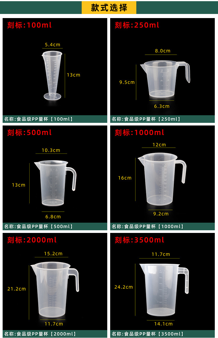 두꺼운 PP 플라스틱 계량컵 고투명 스케일 베이킹 계량컵 우유 찻집 냉수병 소포장 컵 키친 툴스토어 가기