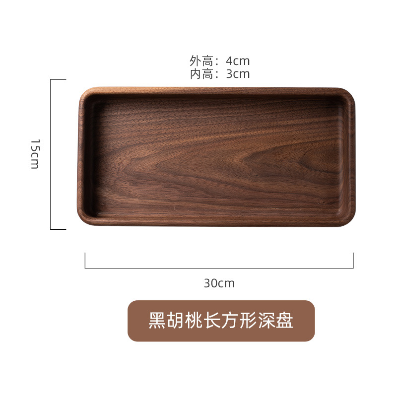 스탠드 엔드 블랙 호두 말린 과일 접시 일본 간식 다과 접시 단단한 나무 둥근 그릇 쌓을 수있는 직사각형 트레이