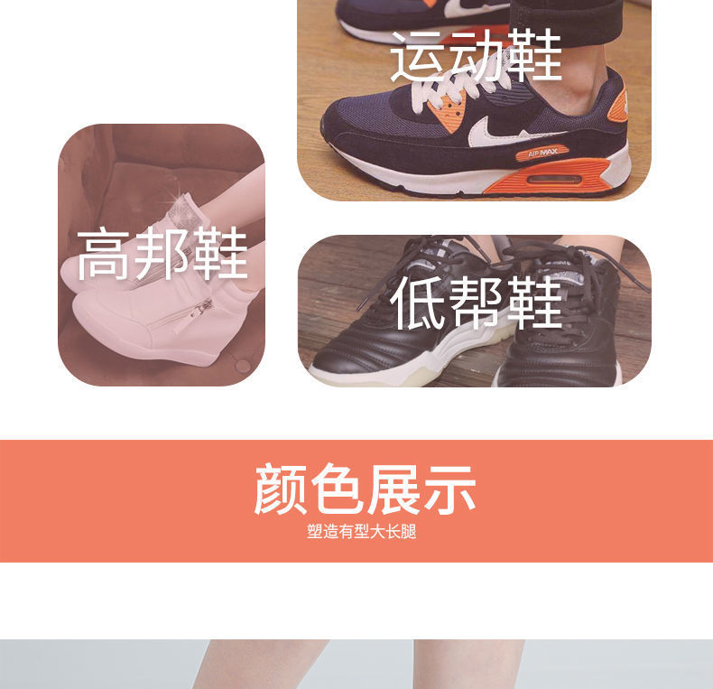 3.5厘米--4厘米建议搭配鞋带靴子,马丁靴高帮鞋哦(脚胖的需要宽松一些的鞋子哦)